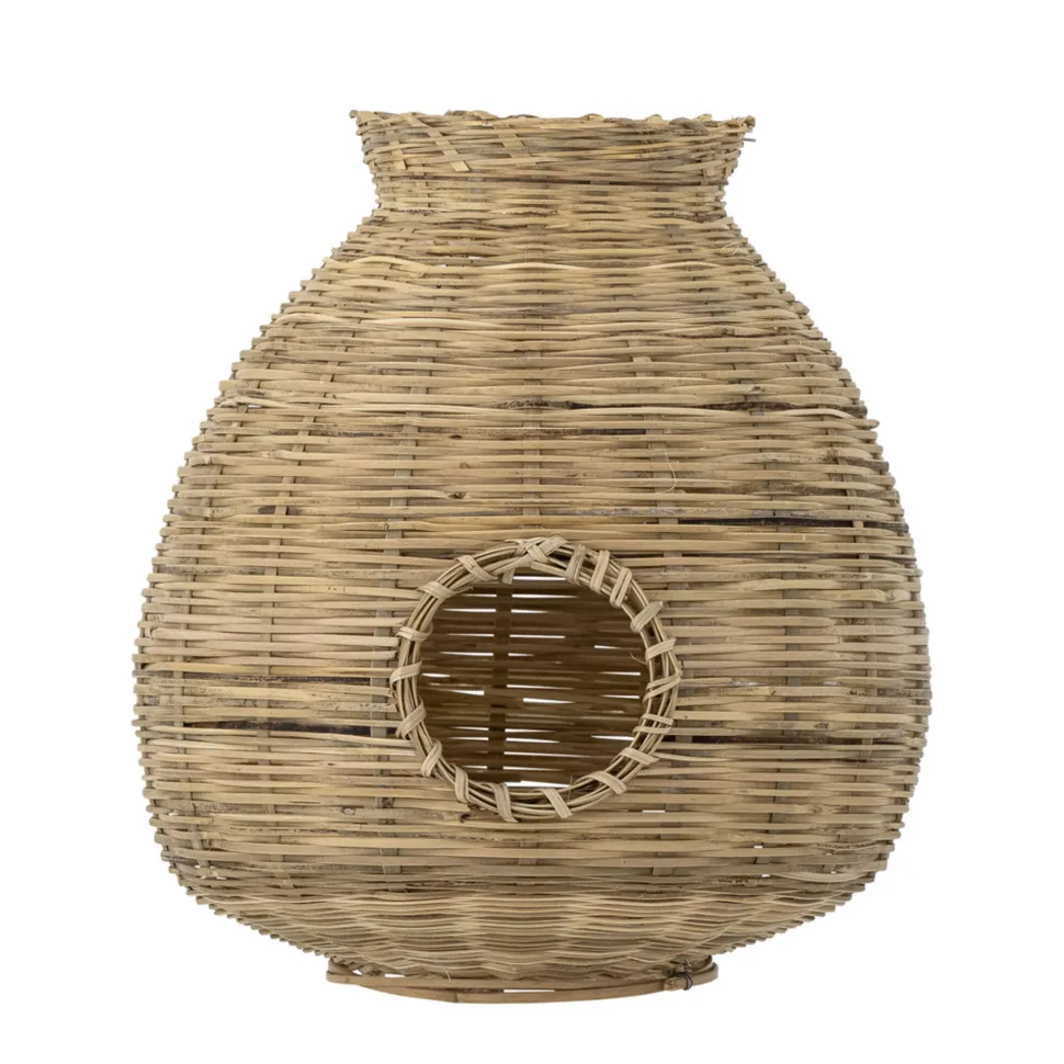 Ottine Laterne mit Glas, Natur, Bambus von Bloomingville aus Dänemark. Die Ottine Laterne von Bloomingville schafft sofort eine einladende Atmosphäre mit ihrem gemütlichen Design. Sie ist aus Bambus gefertigt und in einer feinen und dekorativen Form geflochten, inspiriert von traditionellen geflochtenen Fischfallen. Sie verfügt über einen Glaseinsatz für Kerzen- oder LED-Licht.