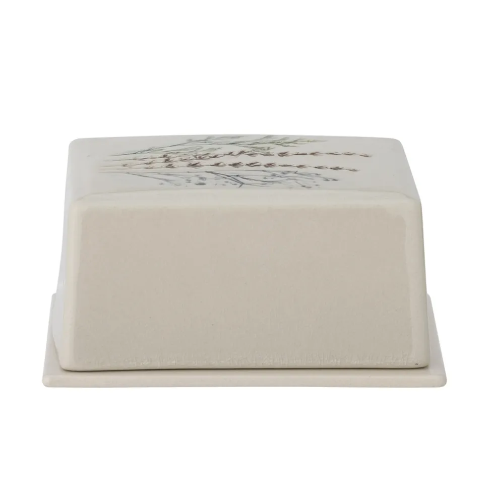Bea Butterdose, Natur, Steingut von Bloomingville aus Dänemark. Die Bea Butterdose von Bloomingville ist aus Steingut gefertigt und mit einem zarten handdekorierten Blumenmotiv auf der krakelierten Glasur verziert. Verwenden Sie die Dose zur Aufbewahrung von Butter, Käse oder ähnlichen Gegenständen in Ihrem Kühlschrank. Die Glasur und die handbemalten Details sorgen dafür, dass jede Butterdose einzigartig ist. Spülmaschinenfest.