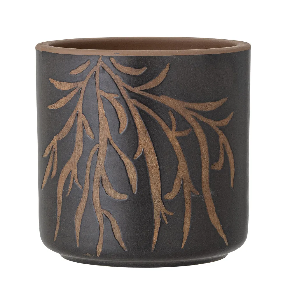 Dieser wunderschöne Blumentopf Dres aus Terrakotta von Bloomingville Cozy eignet sich wunderbar für eine deiner Zimmerpflanzen. Er ist mit einem eleganten Tribalmuster versehen, das toll zu Holzmöbeln und Dekorationen aus Bambus passt.