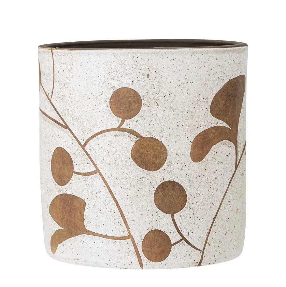 Der Blumentopf Janis von Bloomingville verleiht deinen Pflanzen ein wundervolles florales Design. Der Blumentopf ist ein handgefertigtes Deko-Accessoire aus Terrakotta, kombiniert mit weißer Farbe.