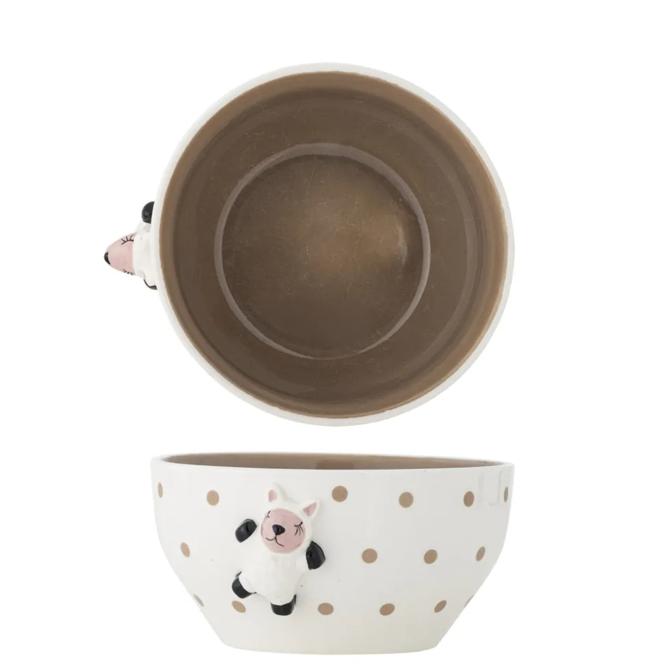 Dolly Schale, Braun, Steingut von Bloomingville aus Dänemark. Die Dolly Schale von Bloomingville MINI kann sowohl für Snacks als auch als Dekoration im Kinderzimmer verwendet werden. Die Schale ist mit feinen braunen Punkten verziert und zeigt eine Schaffigur auf der Außenseite. Nutzen Sie sie für die Nachmittagssnacks der Kinder oder füllen Sie sie mit Malutensilien und Kleinigkeiten für eine dekorative Aufbewahrungslösung im Kinderzimmer. Die handbemalten Details machen jede Schale einzigartig.
