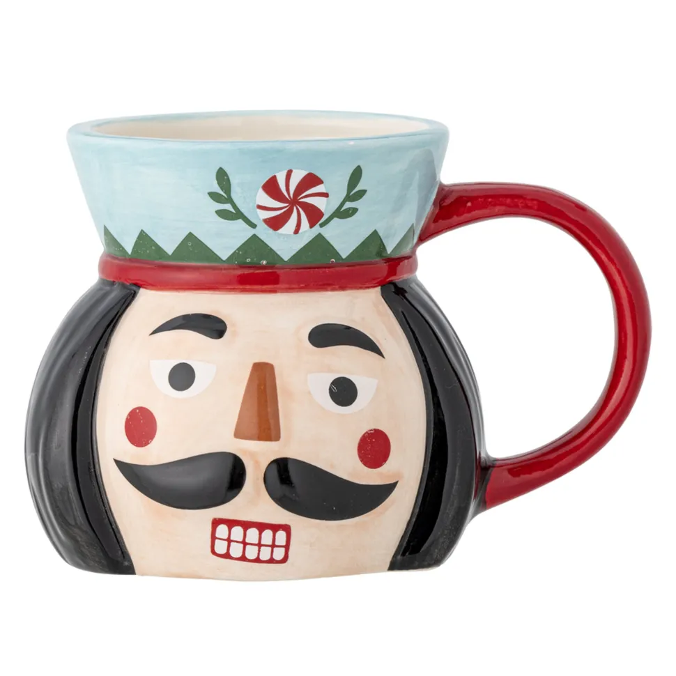 Feast Becher, Steingut von Bloomingville aus Dänemark. Der Feast Becher von Bloomingville ist eine bezaubernde und fröhliche Tasse, perfekt, um Ihr Lieblings-Heißgetränk an einem kalten Wintertag zu genießen. Die Tasse zeigt eine lebendige Illustration eines Nussknackers / Weihnachtsmanns und wird somit zu einem echten Weihnachtsklassiker. Die handgemalte Details heben die charakteristischen Merkmale des Nussknackers hervor, einschließlich seiner einzigartigen Uniform und seines ausdrucksstarken Gesichts. Da ein Teil der Tasse handbemalt ist, können Variationen in den Farben und der Farbintensität auftreten.