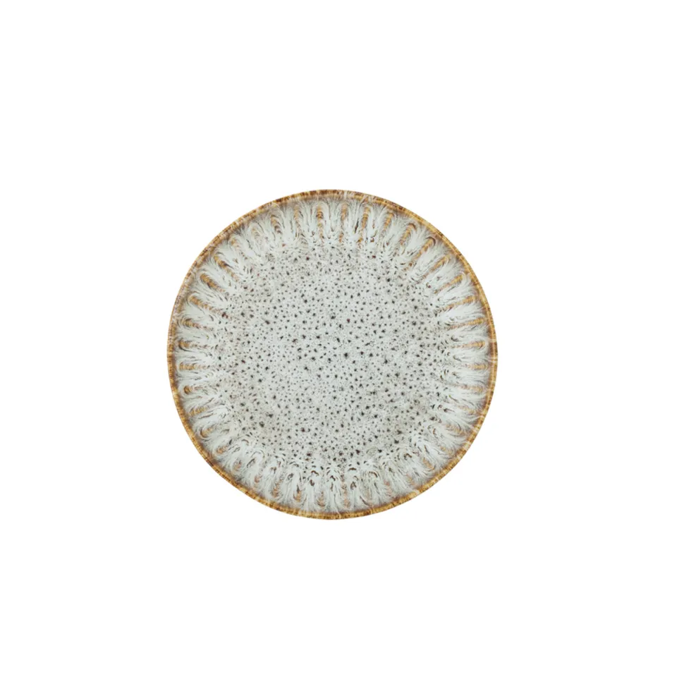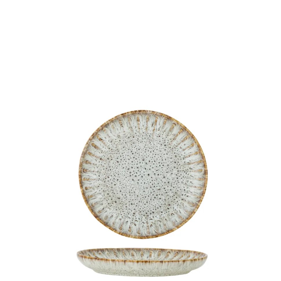 Fleur Teller, Natur, Steingut von Bloomingville aus Dänemark. Der Teller Fleur von Creative Collection ist aus Steinzeug mit einer reaktiven Glasur in hellen Grau- und Beigetönen hergestellt. Das schlichte Design und die glasierte Oberfläche bilden ein harmonisches Kabinett. Die Beschaffenheit der Glasur sorgt dafür, dass jeder Teller ein Unikat ist.