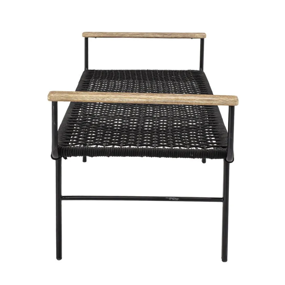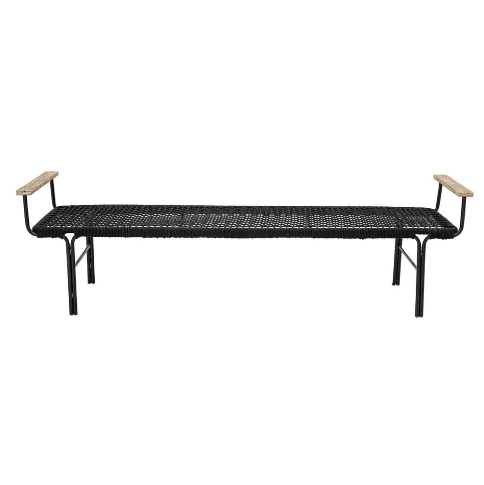 Diese elegante Bank Mundo von Bloomingville sorgt für Abwechslung auf jeder Terrasse. Die Bank besteht aus einem Metallgestell und ist fest mit einem Seil in Flecht Optik umwickelt.