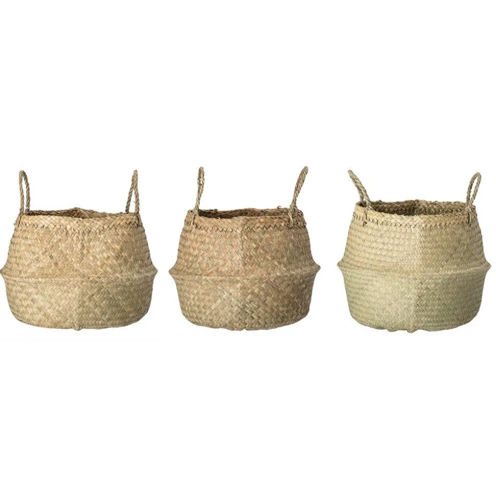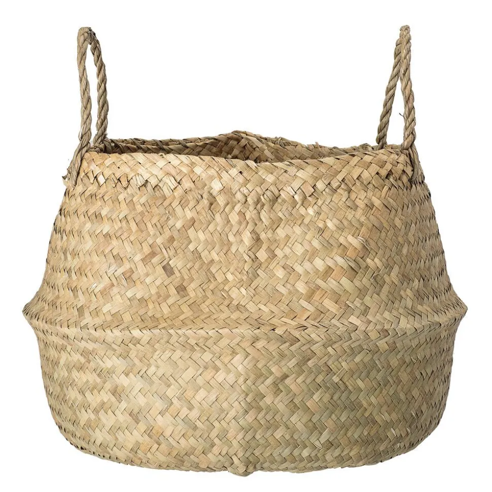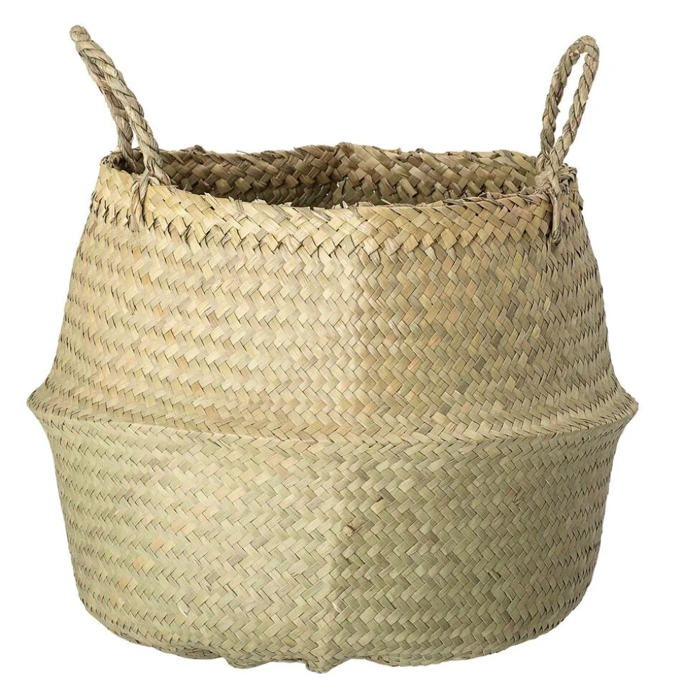 Der Korb besteht aus umweltfreundlichem Natur-Seegras und hat stabile Griffe und kann beispielsweise als Tragetasche am Strand verwendet werden. Der Korb eignet sich auch hervorragend zum Aufbewahren von Decken oder Spielzeug im Kinderzimmer und dient sogar als Blumentopf für Zimmerpflanzen.