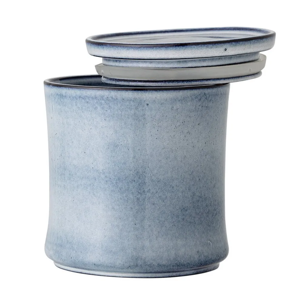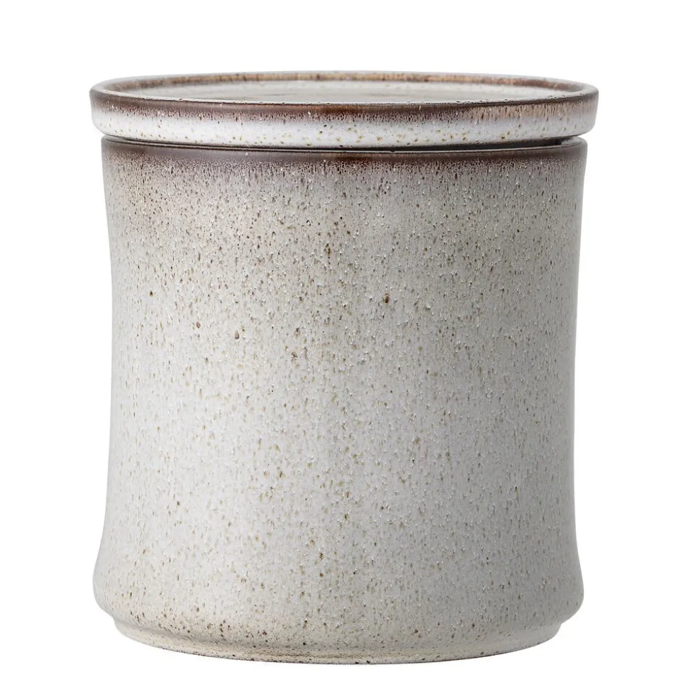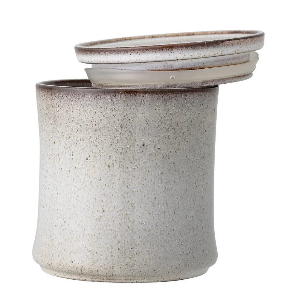 Diese entzückende Dose von Bloomingville besteht aus Steingut und ist mit einem Deckel mit Gummiring versehen, damit du sie einigermaßen luftdicht verschließen kannst. Bewahre darin diverse trockene und feuchte Lebensmittel auf und erfreue dich an dem besonderen Aussehen der Dose, welches durch die spezielle Glasur entstanden ist. Durch die Form an der oberen und der unteren Seite der Dose kannst du sie auch ganz einfach aufeinander stapeln.