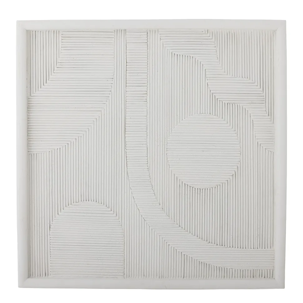 Die Patina Wanddekoration von Bloomingville ist aus Polyresin gefertigt und hat eine wunderschön texturierte Oberfläche. Die Dekoration ist weiß und mit einem grafischen Muster verziert, das dem Zuhause eine künstlerische Dimension verleiht. Kombinieren Sie die Patina Wanddekoration mit anderen Wanddekorationen in ruhigen Nuancen, um eine harmonische und einladende Atmosphäre zu schaffen.