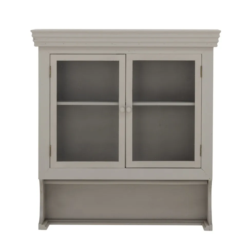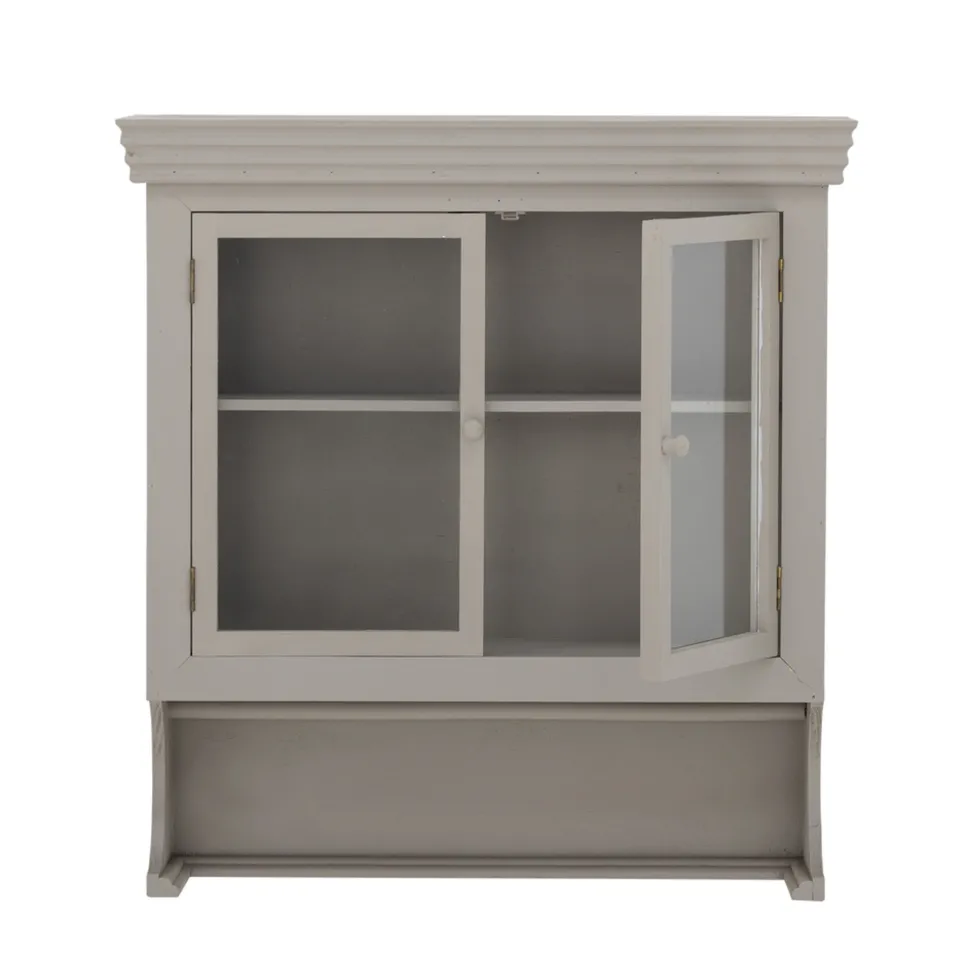 Pilu Kabinett, Grau, Tannenholz von Bloomingville aus Dänemark. Das Pilu Kabinett von Bloomingville ist ein stilvolles Wandschrank, das Ausstellung und Aufbewahrung kombiniert. Der Schrank hat einen leicht patinierten Look, der dem Küchen- oder Wohnzimmer Charakter und Charme verleiht. Der untere Teil ist mit einer praktischen Stange ausgestattet, ideal zum Aufhängen von Haken oder Geschirrtüchern. Die eleganten Glastüren ermöglichen es, Ihre Lieblingsgegenstände zur Schau zu stellen und in Ihre Einrichtung zu integrieren.