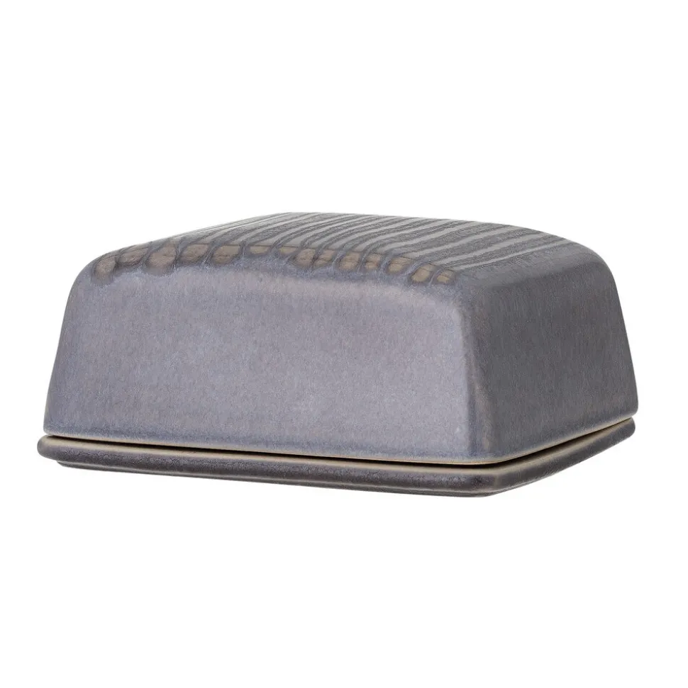 Raben Butterdose, Grau, Steingut von Bloomingville aus Dänemark. Die Raben Butterdose von Bloomingville ist ein eleganter Behälter aus grauem Steingut mit verschwommenen Linien auf der Oberfläche. Diese schöne Butterdose wird Ihrem Frühstück Eleganz verleihen.