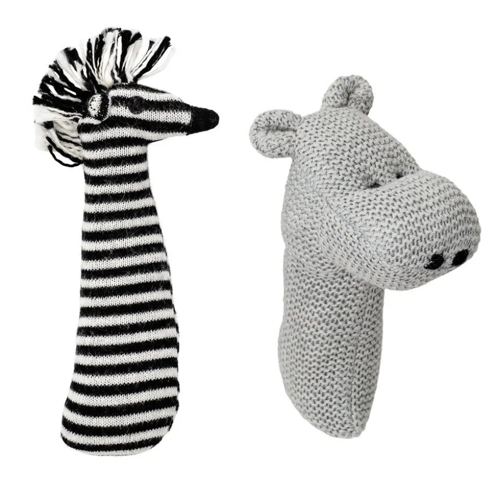 Mache deinem Baby oder deinem Patenkind eine Freude mit dieser schönen Rassel Martina von Bloomingville Mini. Das Zebra bzw. Nilpferd besteht aus geknüpfter Baumwolle mit einer weichen Füllung, sodass du die Kleinen ohne Bedenken mit ihm spielen lassen kannst.