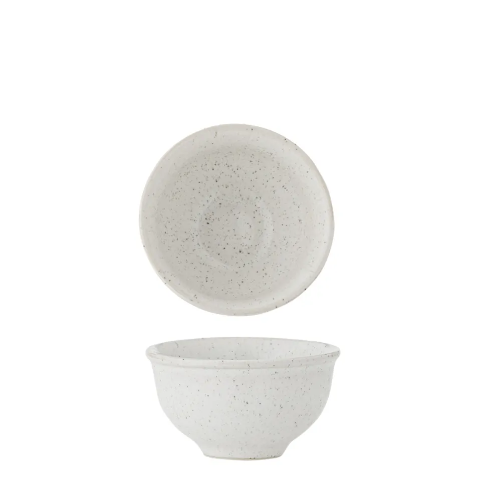 Die gesprenkelte Oberfläche und die braune Kontrastfarbe verleihen jeder Schale ein einzigartiges Aussehen. Die Größe der Schale macht sie ideal zum Servieren von kleineren Portionen, wie Dips und Saucen.