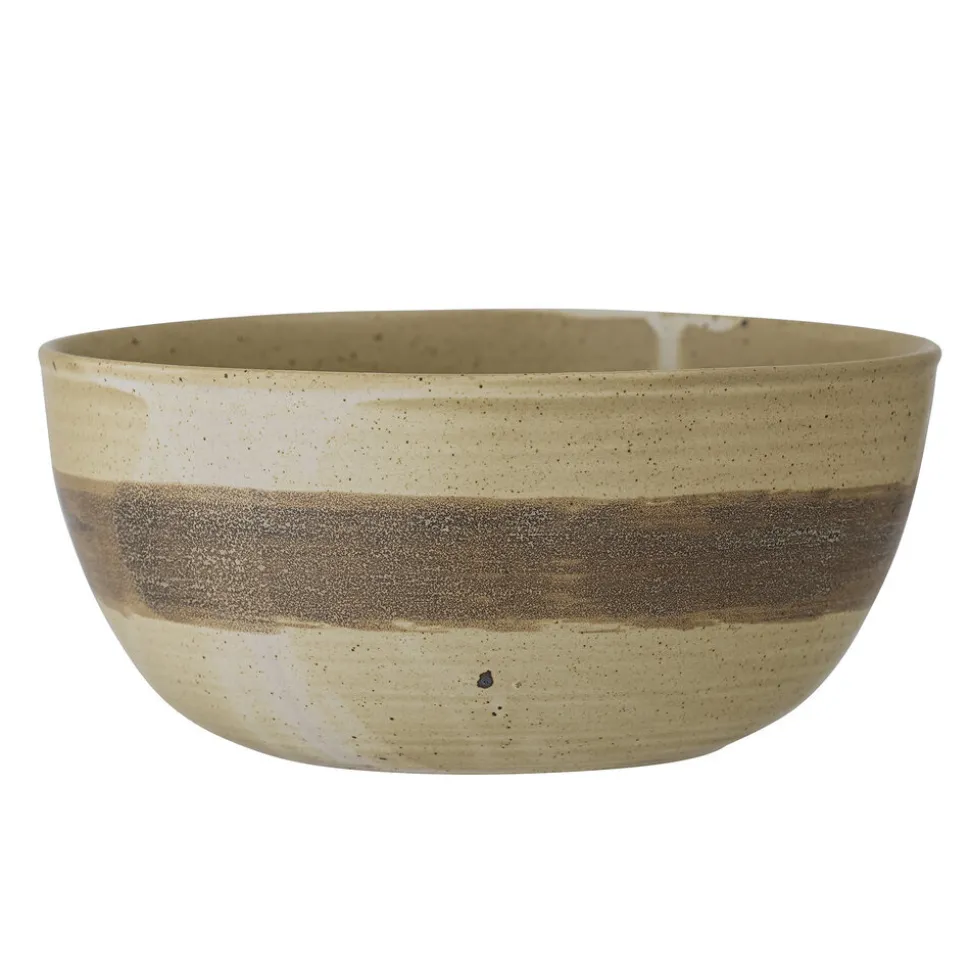Die große Solange Schale von Bloomingville ist ein handgefertigtes Stück aus Natursteingut mit einem kunstvollen Streifen im Inneren. Diese Schale hat ein japanisches Flair und ist handgefertigt und handglasiert, sodass die Glasur und das Muster variieren können. Diese Schale ist eine perfekte Ergänzung für Ihre Küche, wenn Sie etwas suchen, das nicht nur funktional ist, sondern auch gut aussieht.