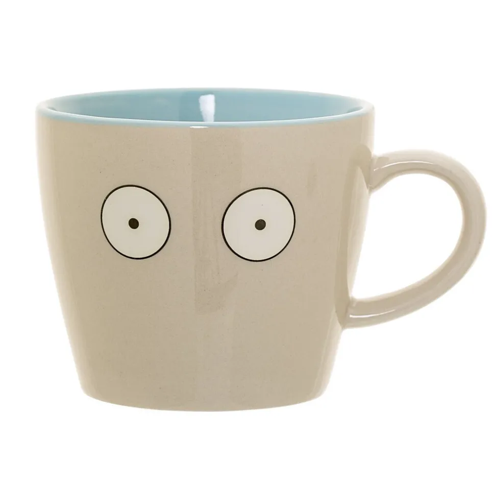 Diese lustige Tasse Christian aus Steingut von Bloomingville Mini verbreitet gute Laune am Frühstückstisch. Deine Kinder können sich an den großen runden Augen und der Aufschrift „Look out!“ im Inneren der Tasse erfreuen. Die Farbkombination aus weiß und blau passt wunderbar zu jeglichem Geschirr.