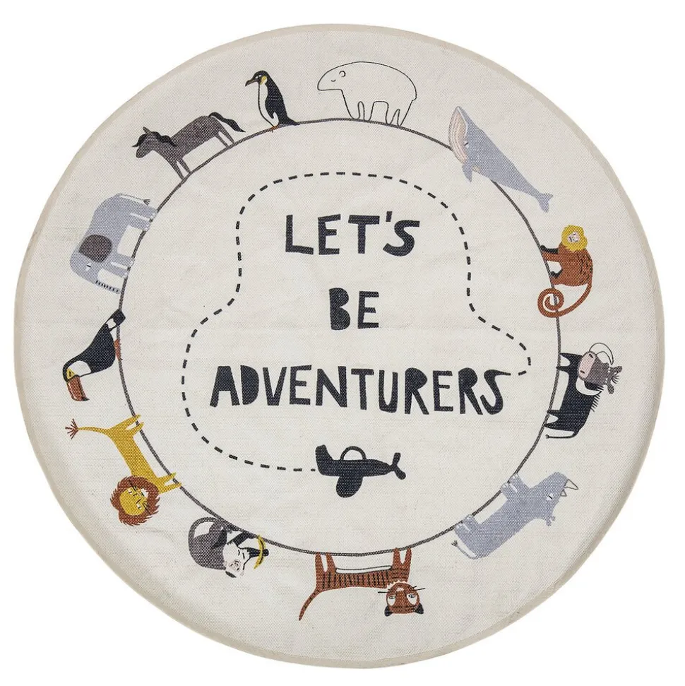 Dieser schöne Teppich Leopold aus Baumwolle von Bloomingville Mini stimmt deine Kinder aufs Spielen ein. Der runde Teppich mit dem ermutigenden Spruch „Let’s Be Adventurers“ ist von coolen Wild Tieren, wie einem Tiger, einem Löwen oder einem Pinguin umringt. Lege ihn in die Mitte des Kinderzimmers, damit deine Kinder genügend Platz haben, um ihn als Spielteppich zu nutzen.