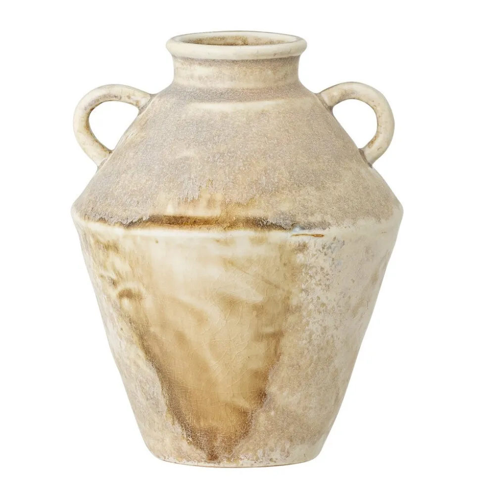 Diese schöne Vase Ines aus Steingut von Bloomingville Saffron & Ginger ist ein absoluter Hingucker. Die Farbverläufe von braun und beige laden zu genauerem Hinsehen ein und passen wunderbar zu Möbeln aus Holz oder Rattan. Die Form der Vase erinnert an Dekorationen aus der griechischen Antike mit einem modernen Schliff. Durch die schmale Öffnung bleiben Zweige oder Blumen aufrecht stehen.