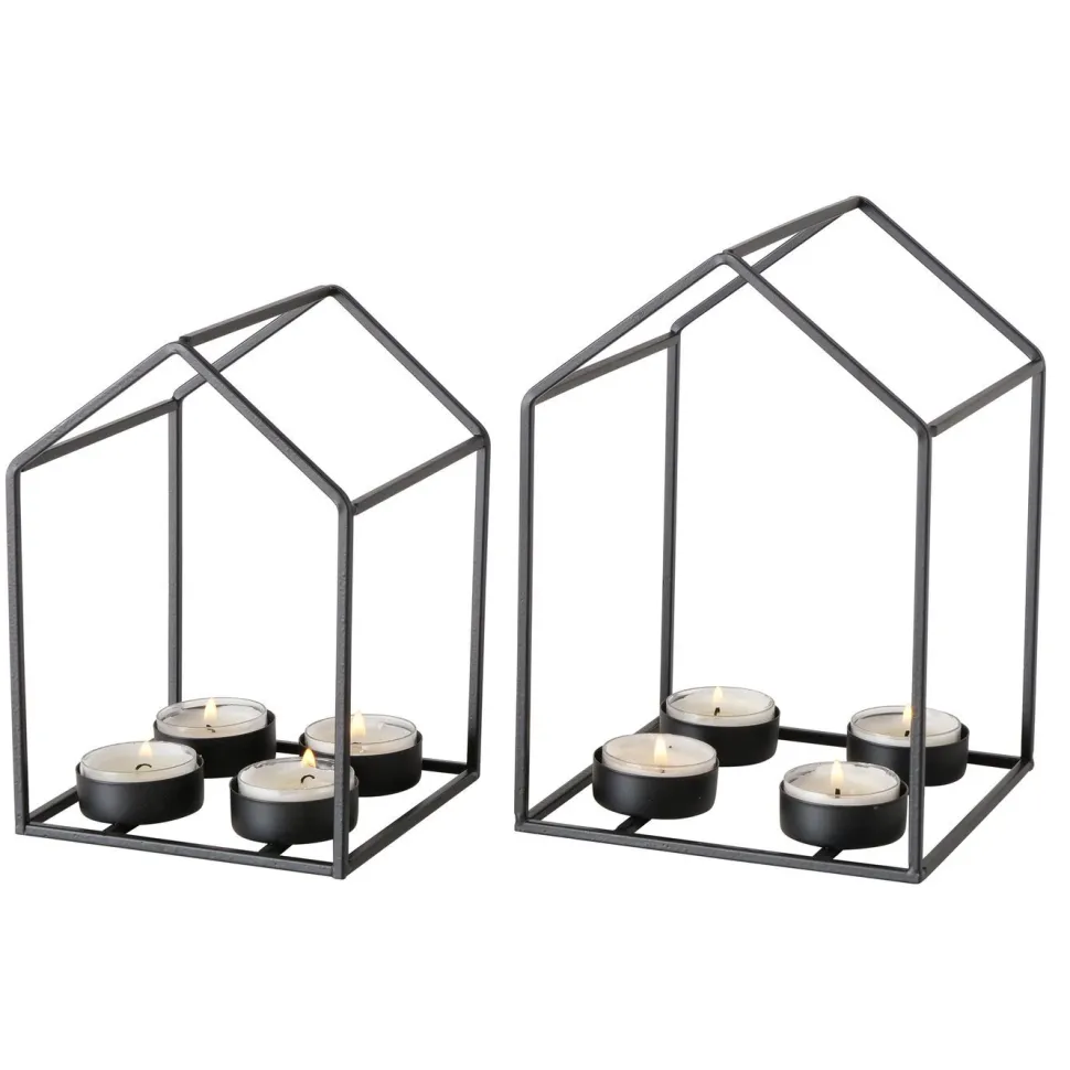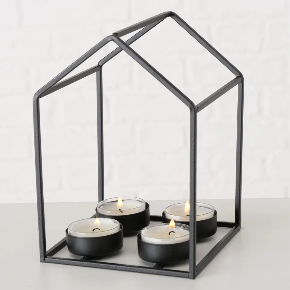 Die Teelichthalter haben eine minimalistische Haus-Form und verliehen deinen vier Wänden eine persönliche Note. Jeder Teelichthalter kann 4 Teelichter halten und erhellt den Raum mit wundervollen und gemütlichen Lichtern.