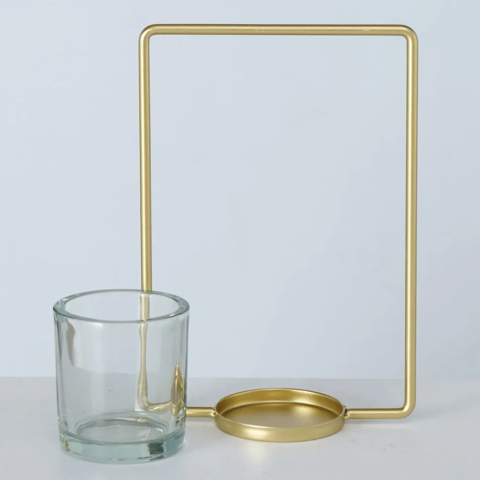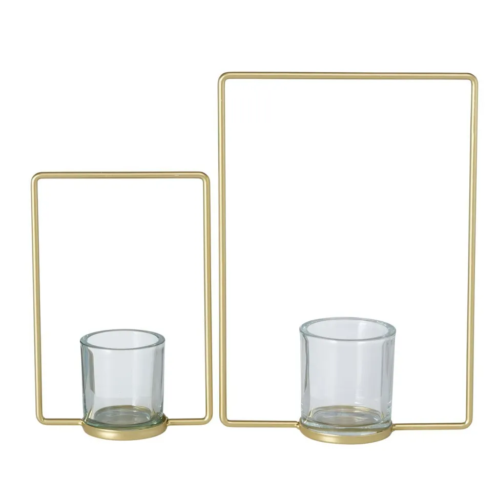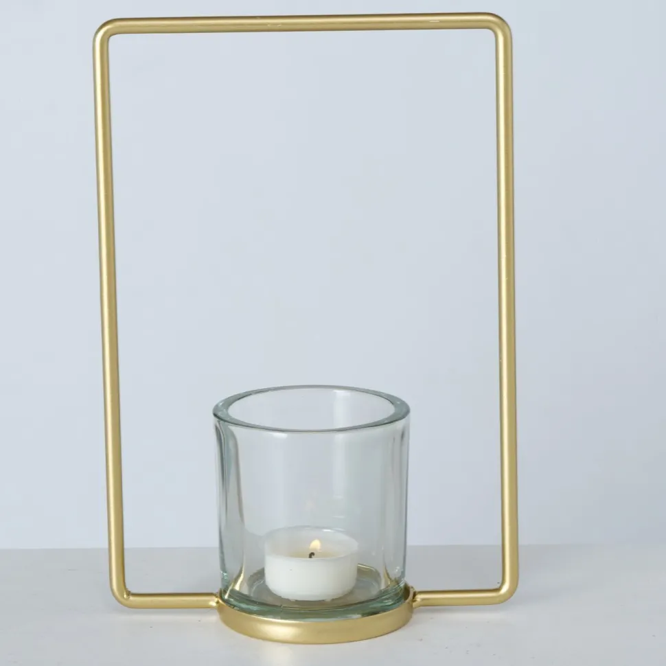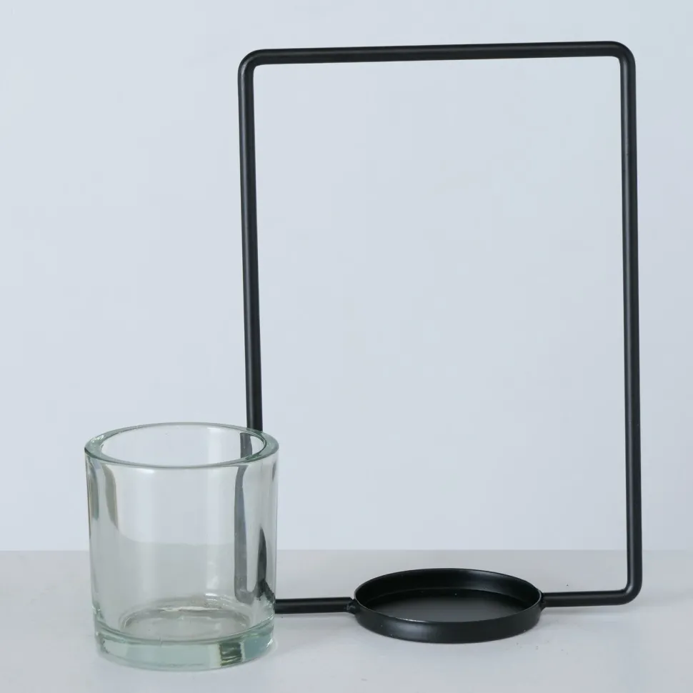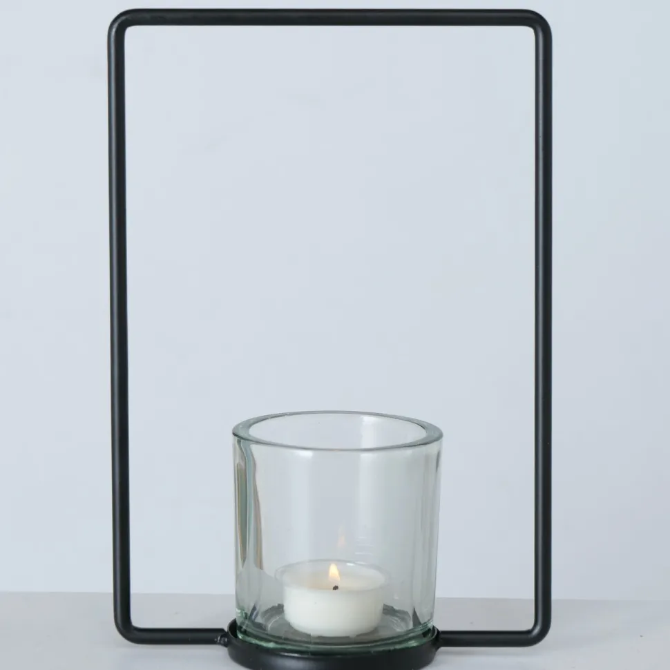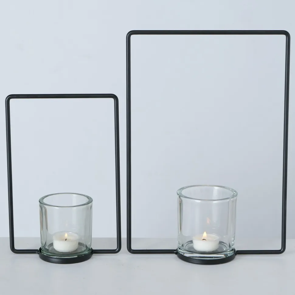 Diese zwei handgearbeiteten Teelichthalter im 2er Set eignen sich wunderbar um tolle Akzente im Wintergarten oder im Schlafzimmer zu setzen. Im Wintergarten auf einem kleinen Beistelltisch neben einer Grünpflanze oder im Schlafzimmer auf der Kommode, sehen diese zwei Teelichthalter toll aus! Die Teelichtgläser sind mit einem Eisenrahmen umrandet und sind für den Innenbereich geeignet.