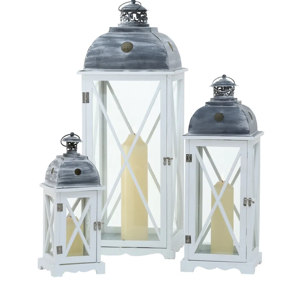 Schönes 3er Set Deko Laternen, Größe , Höhe 42-86cm weiss Kiefer