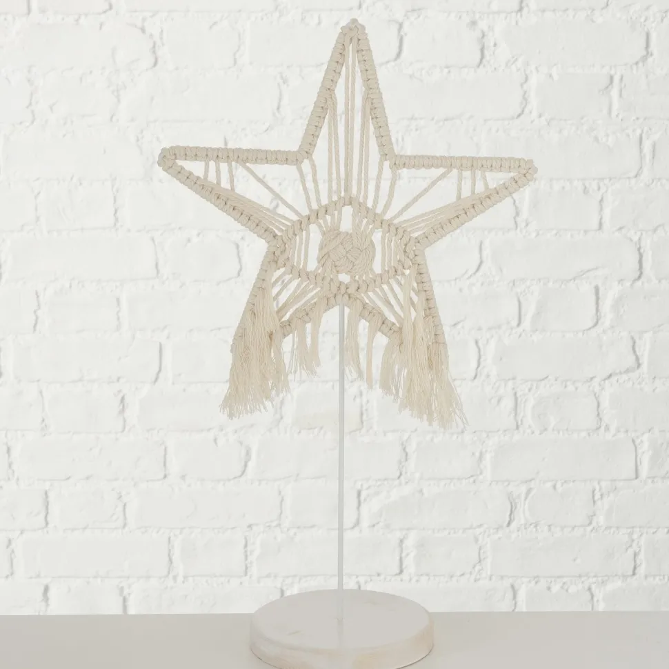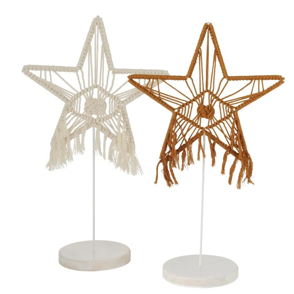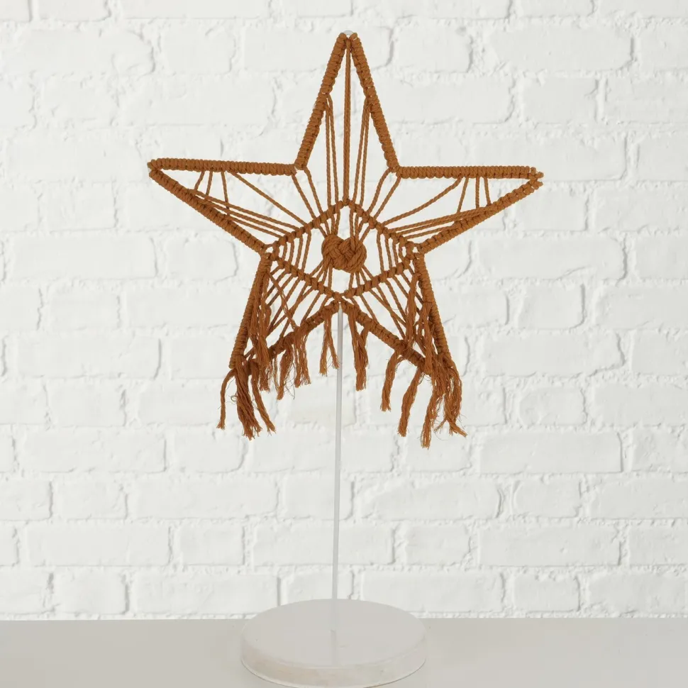 Dieser zauberhafte Dekoaufsteller Lene aus Baumwolle im 2er Set von Boltze ist ein toller Hingucker auf jeglichen Oberflächen in deinem Zuhause. Der weiße und braune Stoff wurde kunstvoll um einen sternförmigen Draht gewickelt und in einem schönen Muster verknüpft. Neben Windlichtern und hübschen Figuren kommt dieser Aufsteller wunderbar zur Geltung.