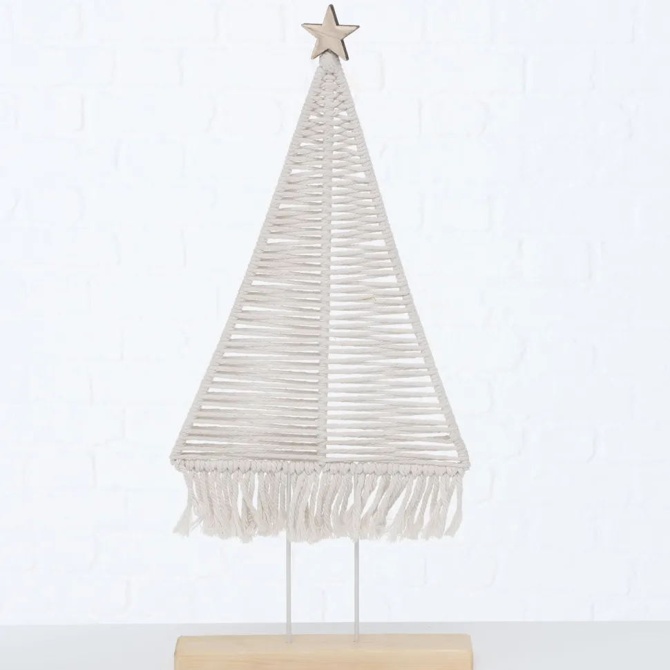 Dekoriere zu Weihnachten ganz modern mit diesem zauberhaften Dekoaufsteller Torvi aus Stoff im 3er Set von Boltze. Der Weihnachtsbaum ist aus weißem, beigem und grauem Stoff geknüpft und mit einem Stern aus Holz an der Baumspitze versehen.