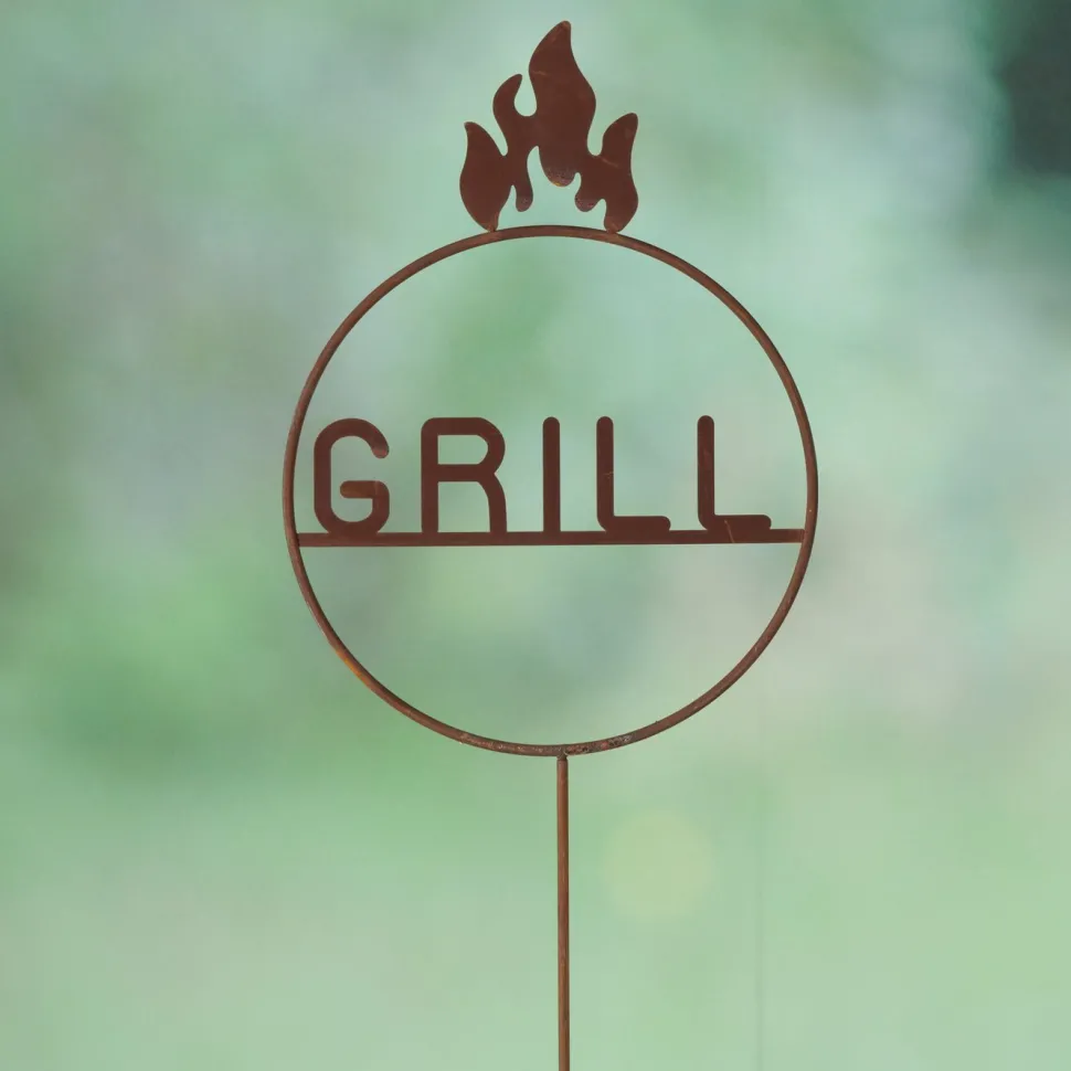 Der Gartenstab aus der Industrial Garden Serie von BOLTZE besitzt eine Höhe von 162 cm und eine für den Garten sehr passende rostbraune Farbe. Die kleine Flamme und der Schriftzug GRILL machen schnell deutlich, dass die Zeit im Sommer hier im Garten gesellig verbracht wird.