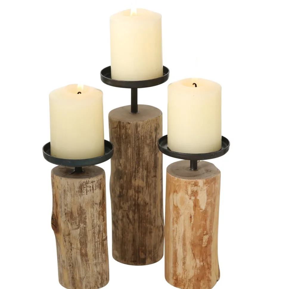 Rustikaler Kerzenleuchter Tempe, 3 tlg aus Holz und Eisen von BOLTZE im SKANDEKO Onlineshop kaufen.