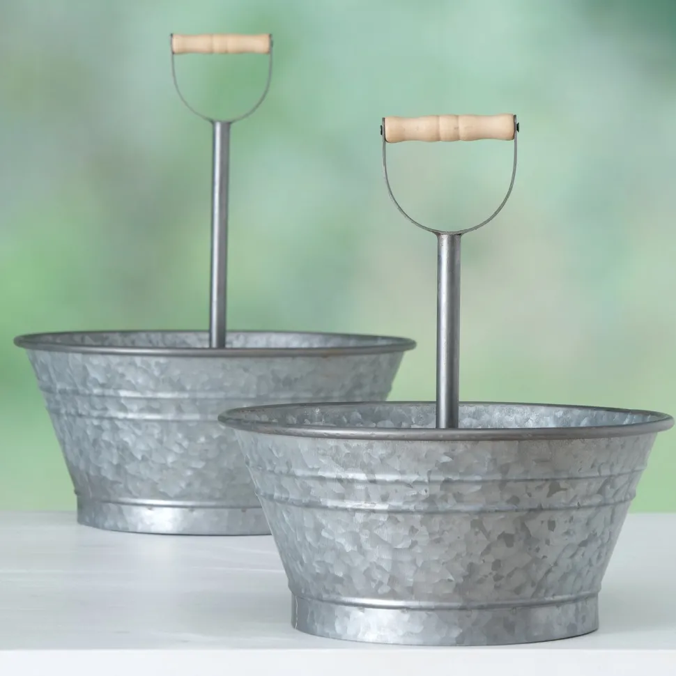 Wunderschönes Pflanztopfhalter Set Jackson 2-teilig aus Metall mit Holzgriff von BOLTZE