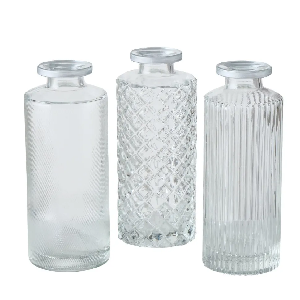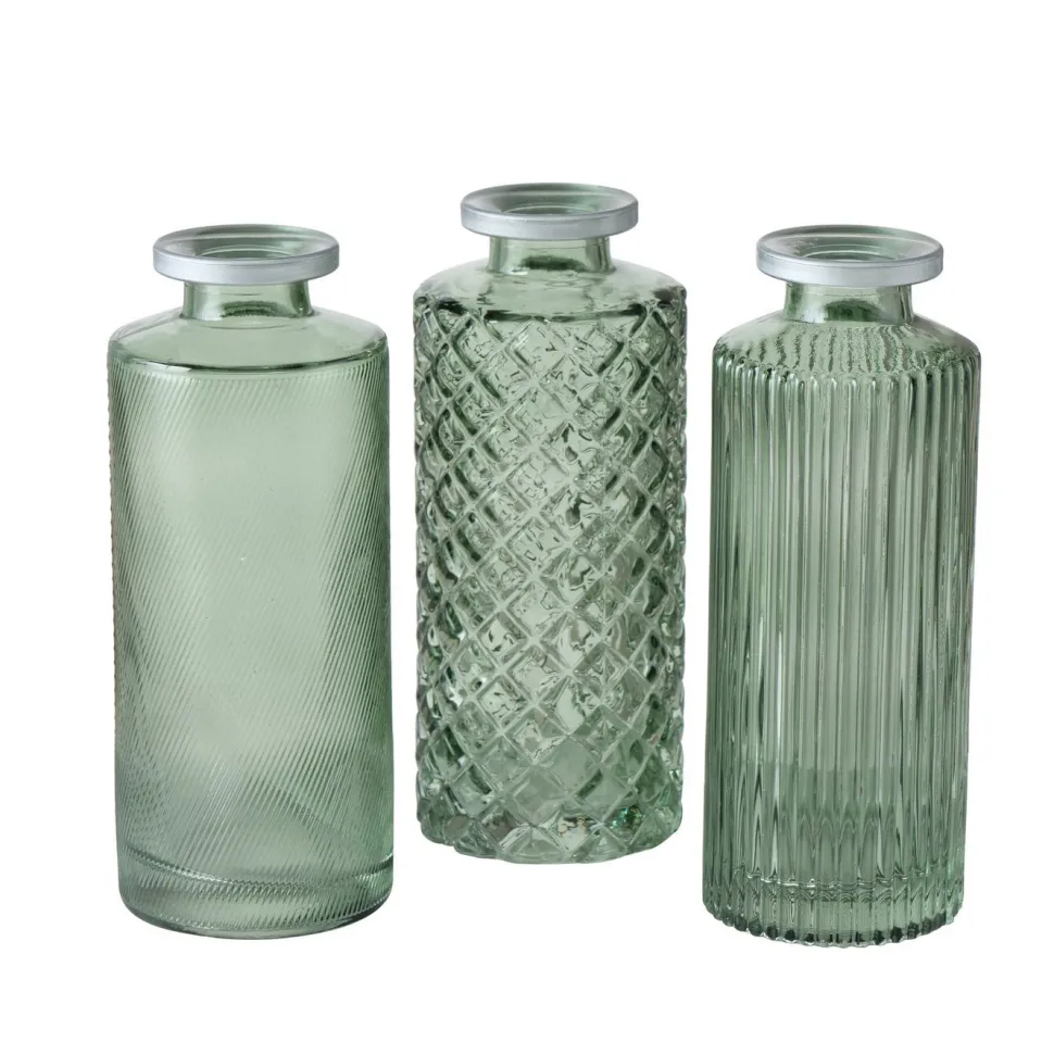 Diese tolle Vase Adore im 3er Set aus der Serie Happy Wedding von BOLTZE ist für festliche Ereignisse wunderbar geeignet. Ob draußen oder drinnen, die drei Glasvasen mit ihren unterschiedlichen Strukturen passen wunderbar auf Stehtische, Esstische oder die Fensterbank. Du kannst die Vase Adore in grün oder farblos bestellen und sie mit niedlichen Blümlein ausschmücken. Die grüne Vase wurde sogar handbemalt und bringt etwas Farbe auf den Tisch, während die farblose Vase klassisch überzeugt.