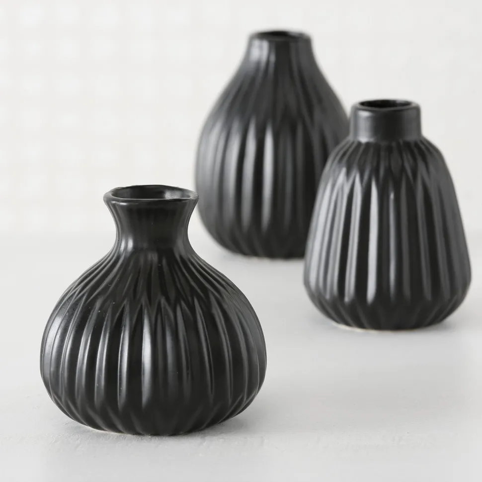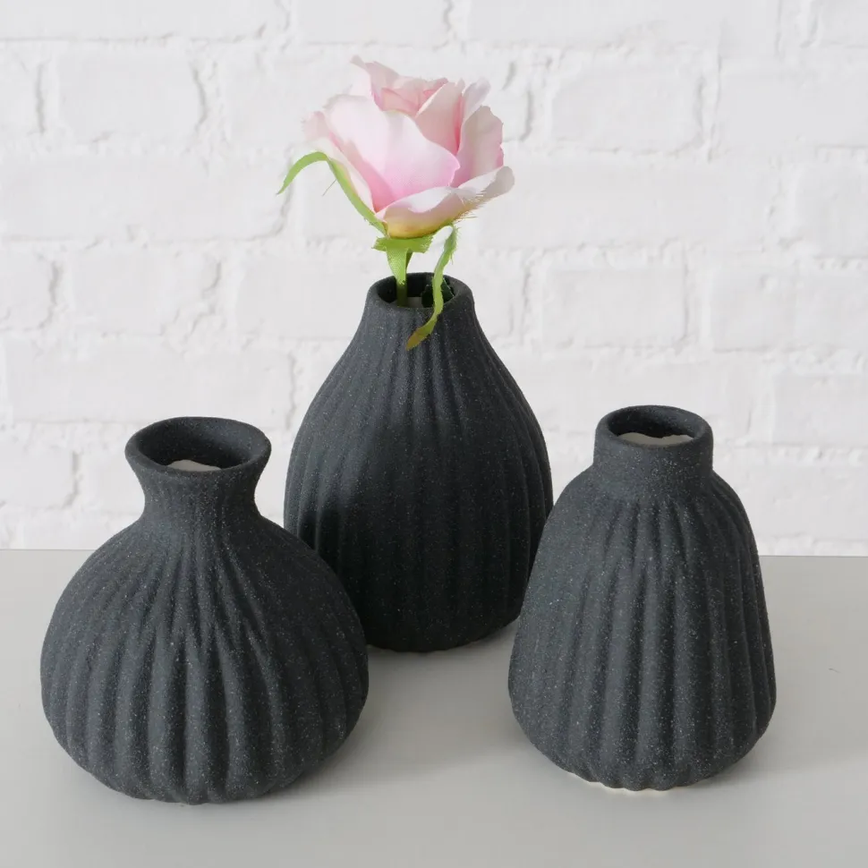 Vase Esko im 3er-Set von Boltze Home aus der Nature Love Reihe ist in vielen attraktiven Farben erhältlich. Die Vasen sind nur für den Indoor Bereich anzuwenden.