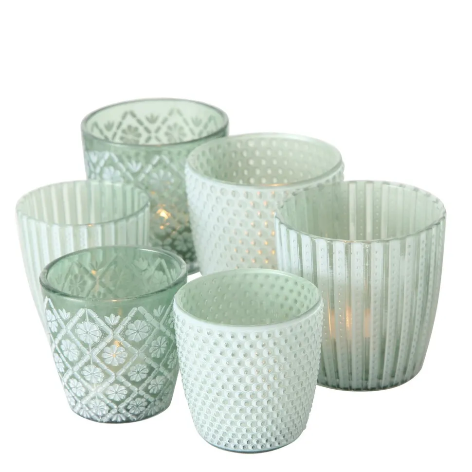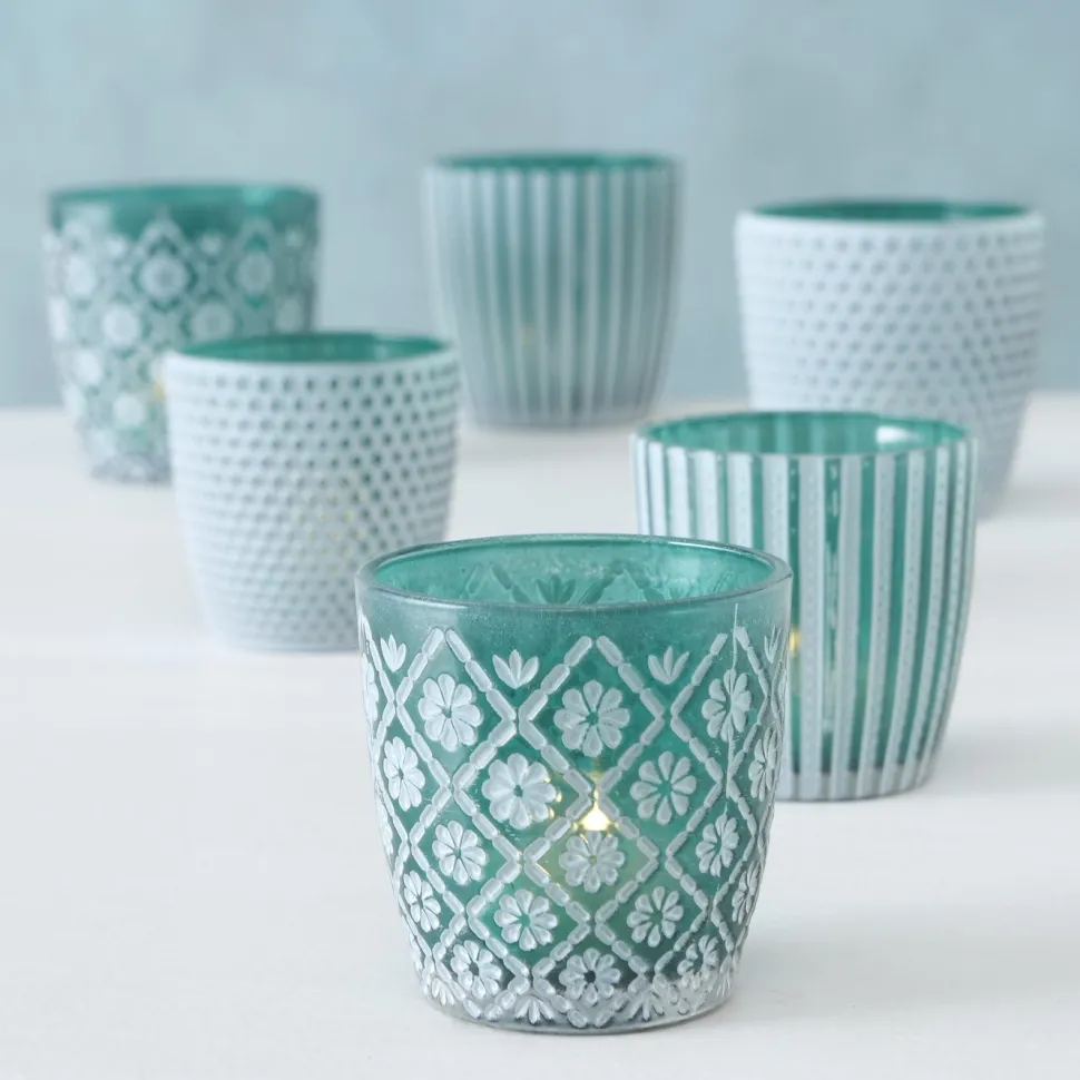 Die Windlichter Patty im 6er-Set von Boltze Home sind handgearbeitet und in vielen attraktiven Farben erhältlich. Es gibt 3 unterschiedliche stilvolle Muster in jeweils 2 Größen.