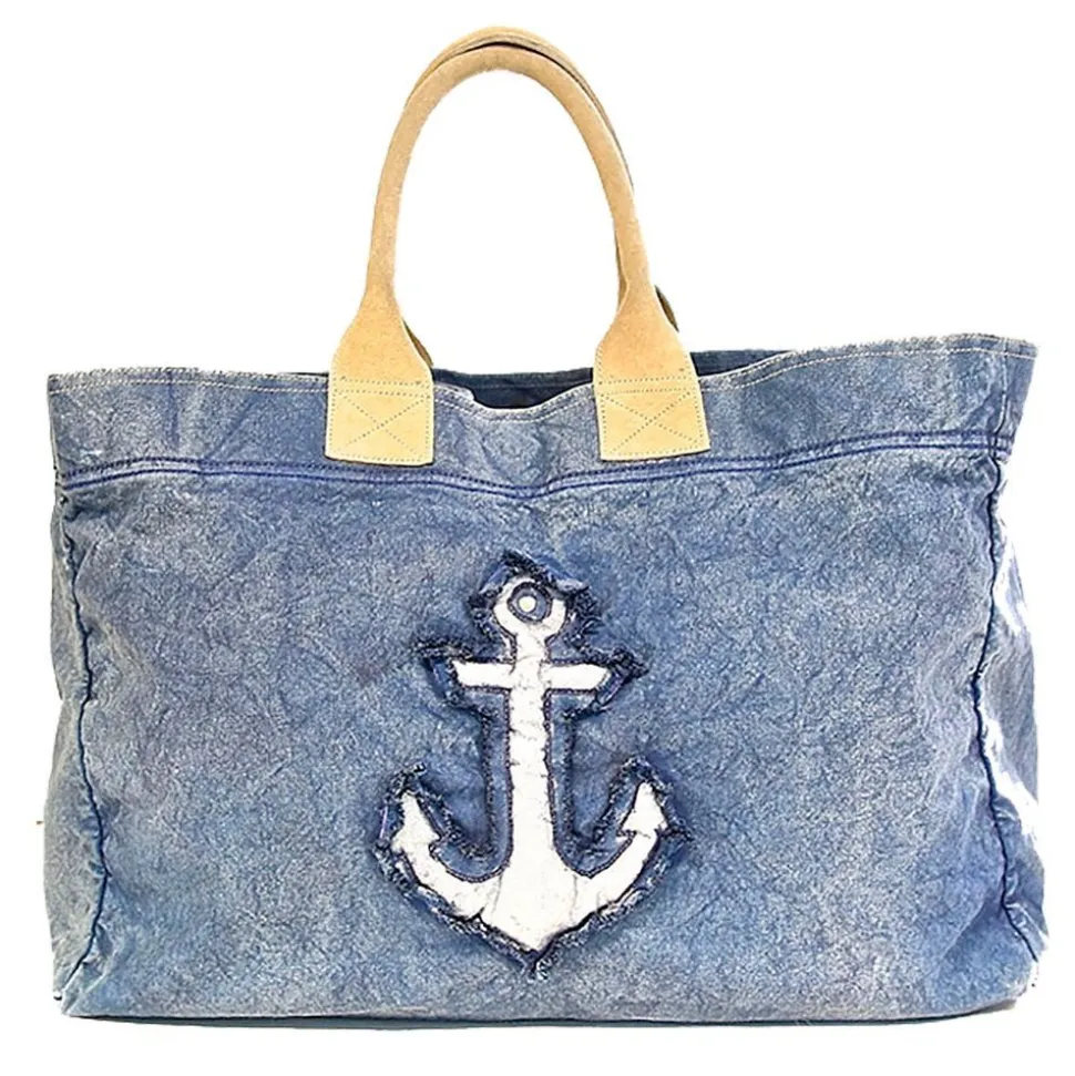 Sommer, Sonne, Strand und das perfekte maritime Feeling mit dieser Tragetasche Anker von byRoom. Diese Tasche bietet unfassbar viel Platz für Handtücher, Badelatschen und noch mehr. So ist sie perfekt als Strandtasche geeignet, aber sie lässt sich auch problemlos für deine alltäglichen Erledigungen verwenden. Die Tasche ist aus blauem Canvas-Stoff mit einem leichten Used-Look. Die Henkel der Tasche sind aus Wildleder und bieten einen großartigen Tragekomfort und die silberne Anker Applikation auf der Vorderseite der Tasche schafft direkt eine maritime Atmosphäre. Die Tasche kann bei 30 Grad in der Waschmaschine gewaschen werden.