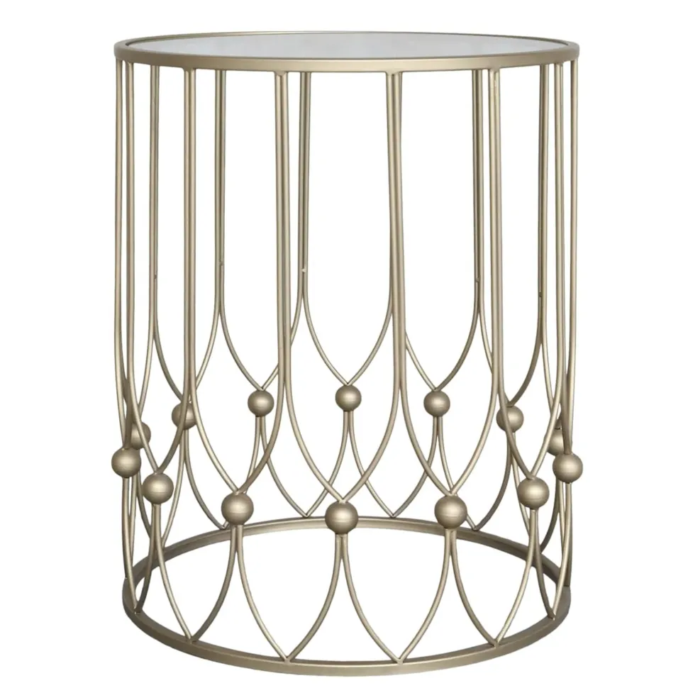 - Stilvoller Beistelltisch mit runder Glasplatte und elegantem Metallrahmen im Vintage-Look