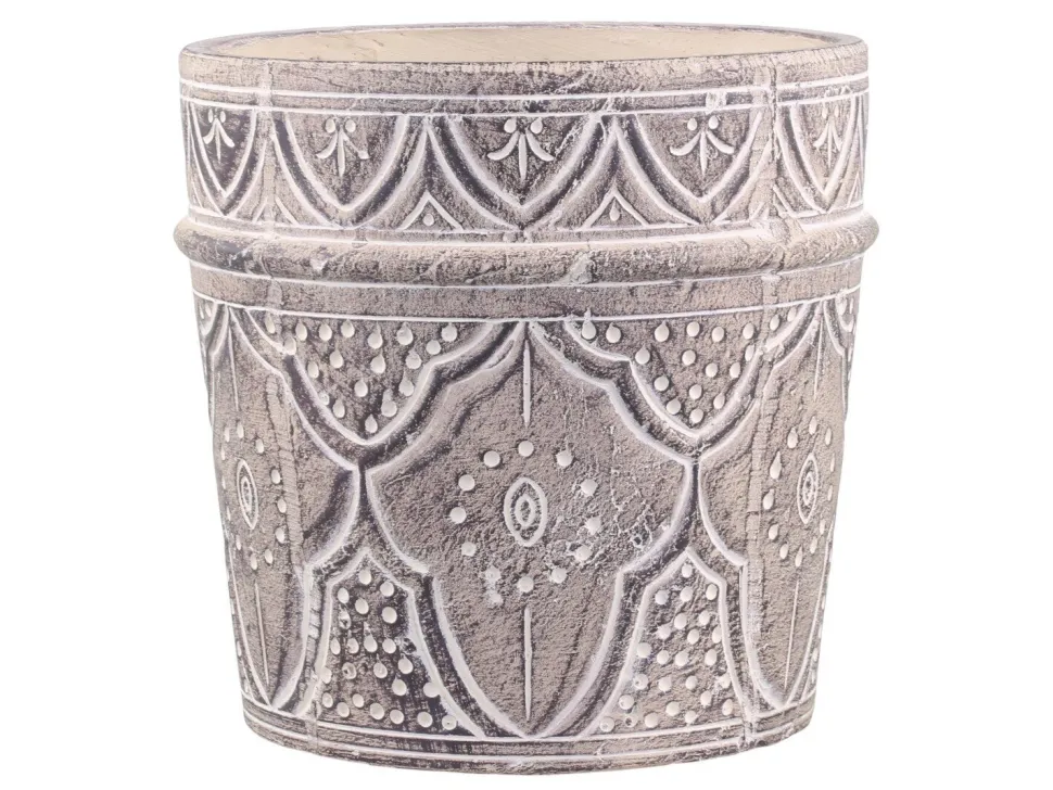 Wie seine Vorgänger besteht auch dieser Übertopf aus Zement und ist mit einem wundervollen Muster gestaltet. Bestücke den natürlichen Übertopf mit deinen Pflanzenlieblingen und sorge für ein modernen und zeitgerechten Look daheim.