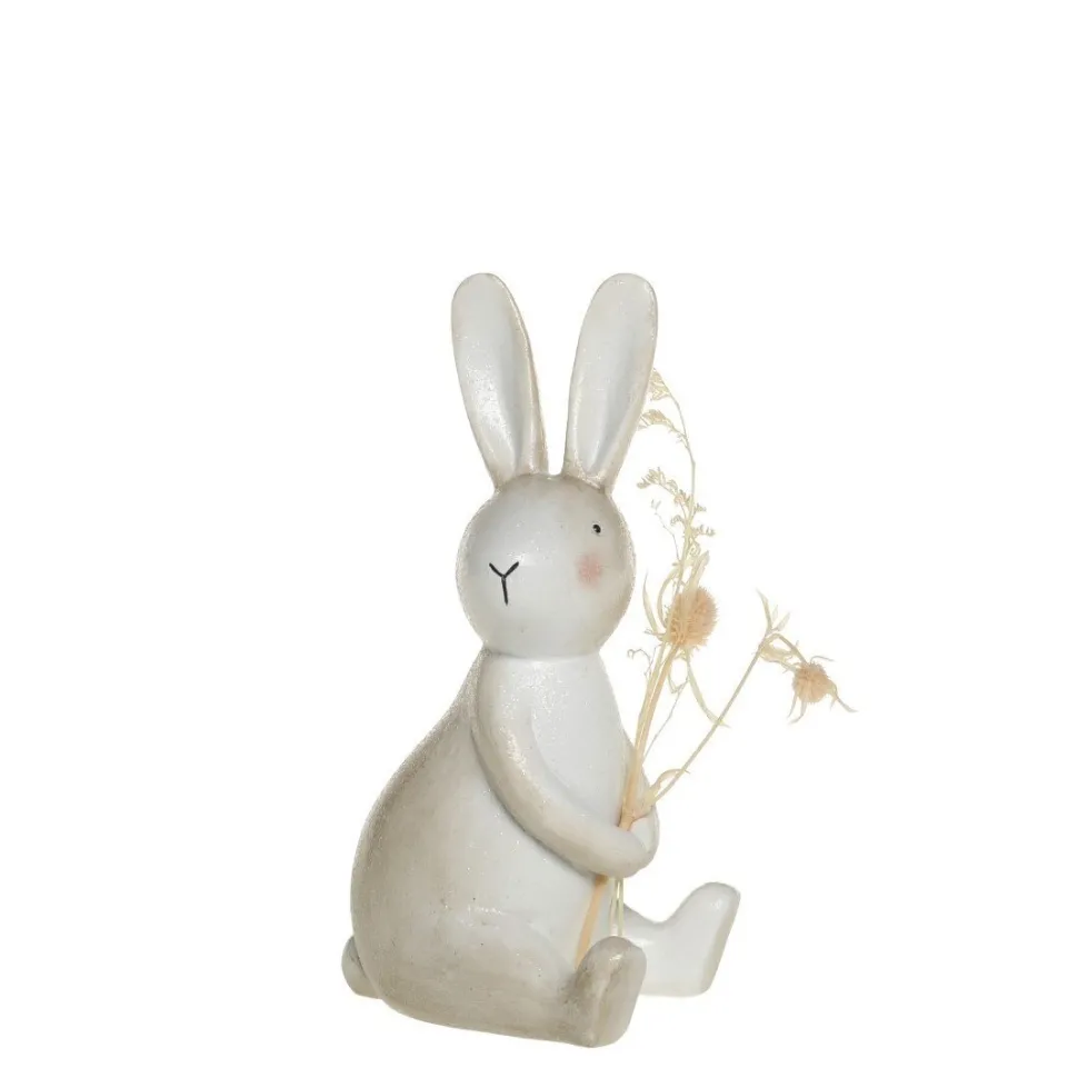Niedliches Häschen mit kleiner Blume in der Hand. Nicht nur zu Ostern eine tolle Dekoidee.