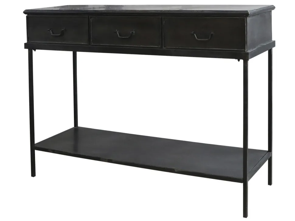 Wahrhaft zum Verlieben! Dieser eiserne Konsolentisch mit 3 Schubladen von Chic Antique schafft einen fabelhaften Kontrast zu hellen Möbelstücken und Dekomitteln. Auch mit Naturelementen kann der Anrichtetisch aus Eisen kombiniert werden und im Wohnzimmer, Umkleidezimmer, Flur oder Esszimmer zum Einsatz kommen.
