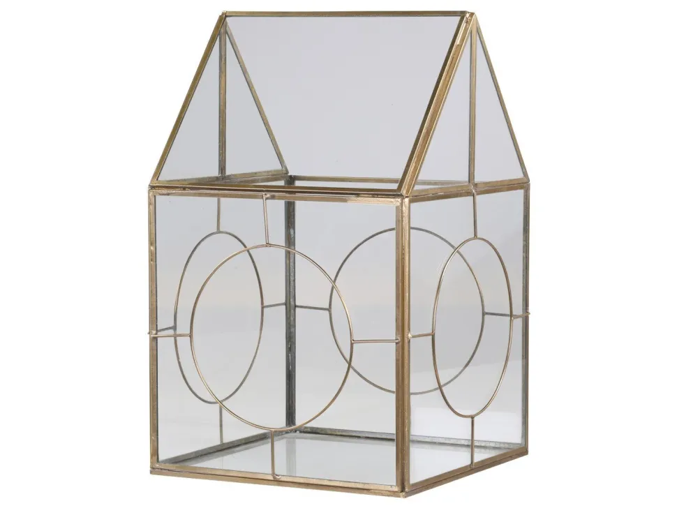 Gläsern mit Eisen Gerüst in antik messing verbreitet das Haus einen goldenen Schimmer, der durch Kerzen verstärkt wird. Du kannst das Dekostück alternativ aber auch genauso gut als Gewächshaus nutzen und dein liebsten Züchtlinge in diesem Schmuckstück groß werden lassen.