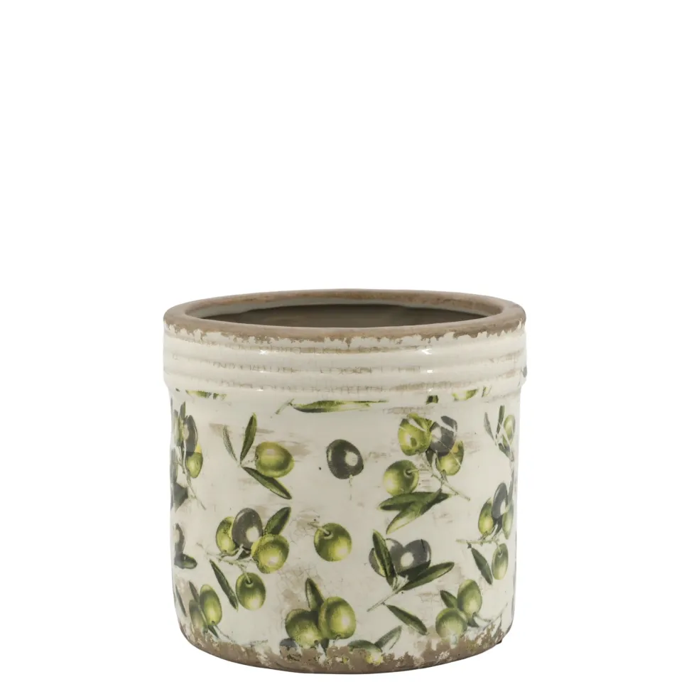 Chic Antique Olive Übertopf mit Rand, Olivenmuster