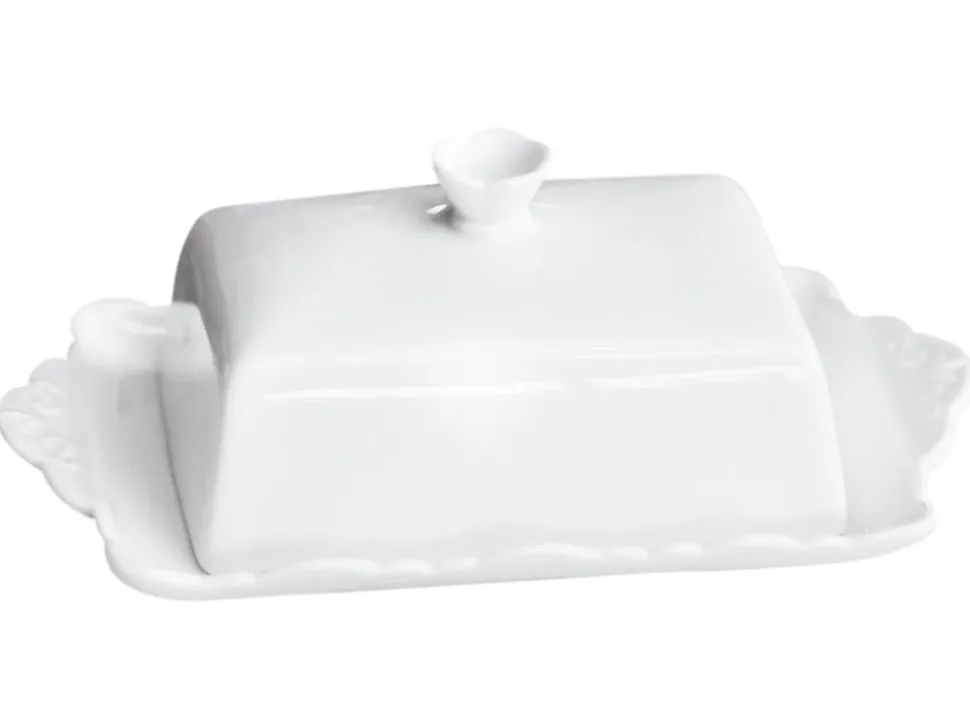 Schöne Butterdose aus Porzellan aus der Landhausstil Geschirr Serie Provence von Chic Antique.