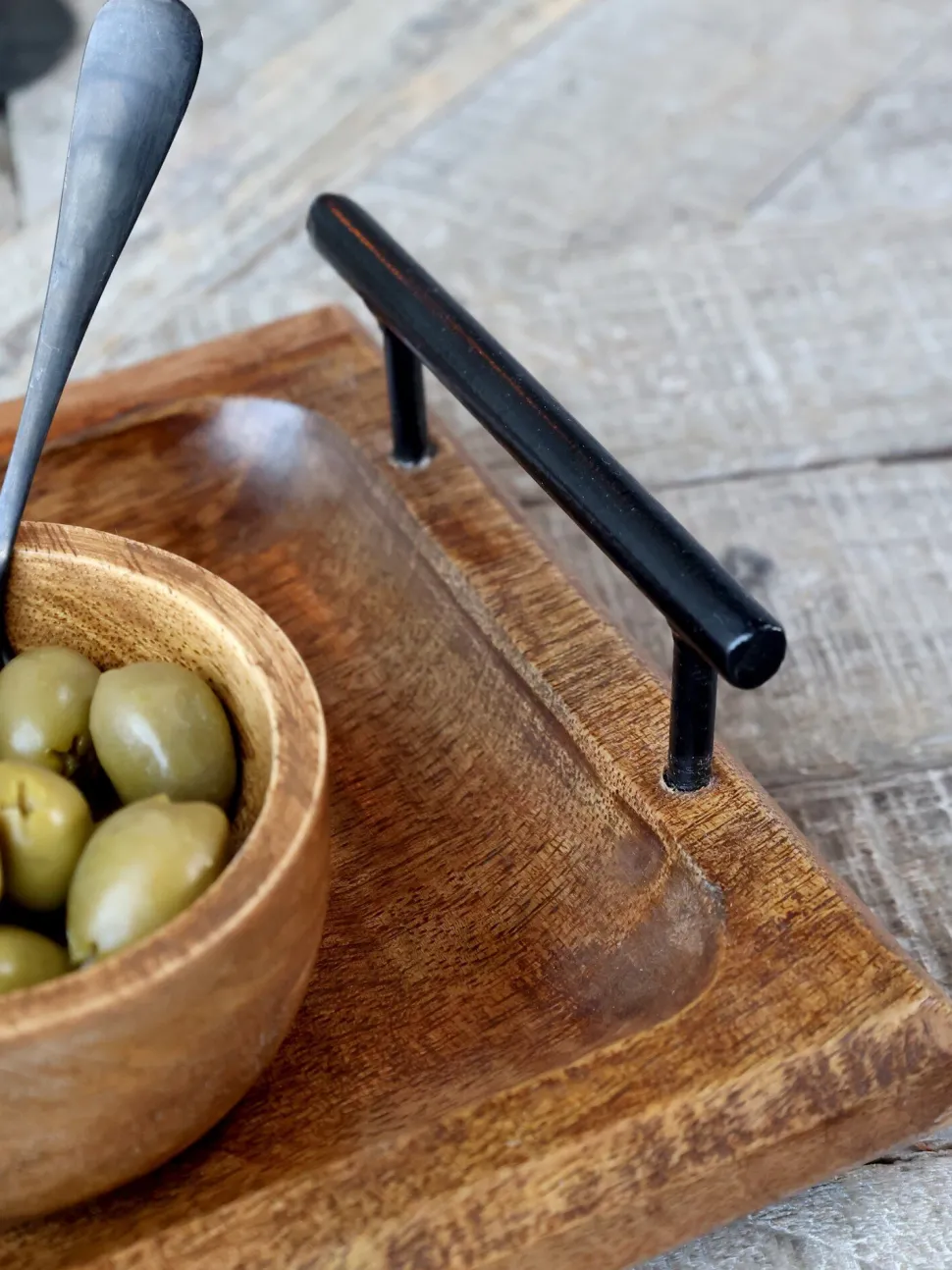 Tours Servier Tablett in Holz mit Henkel von Chic Antique, Dänemark.