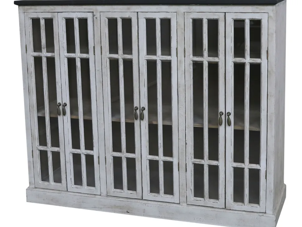 Chic Antique Vitrine mit 6 Türen und schwarzem Top