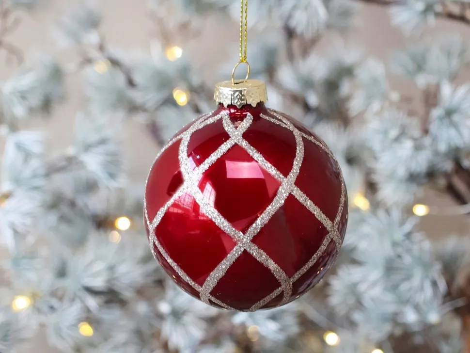 Weihnachtskugel mit Glitzer, rot, verschiedene Modelle von Chic Antique, Dänemark.