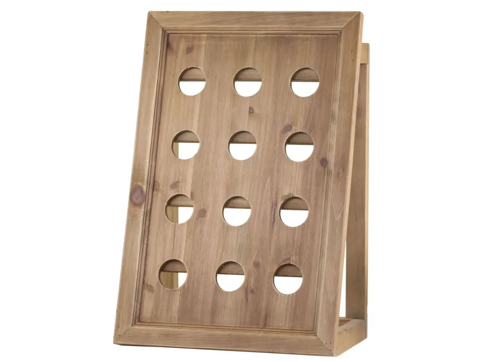 In diesem fabelhaften Weinregal aus wunderschönem Fichtenholz finden bis zu 12 Weinflaschen ihren rechtmäßigen Platz. Durch ein ausgeklügeltes System kannst du deine Lieblingsweine kopfüber in dem Regal platzieren. Das Weinregal lässt sich an der Wand fixieren und ist im Wohnzimmer wahrlich ein kreativer Blickfänger!
