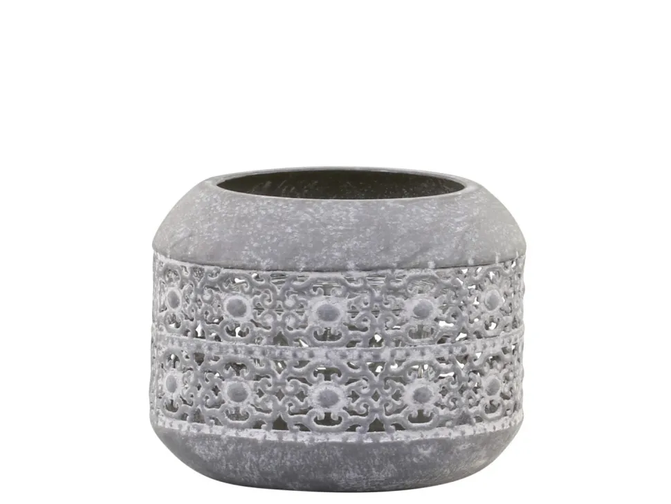 Dieses wundervolle Windlicht in Betonoptik bringt ein neues Licht in dein Innendesign. Die Kombination aus Betonoptik und zierlichem Muster sorgt für einen harmonischen Kontrast. So wird das Windlicht von Chic Antique zu einem echten Highlight deiner Deko-Accessoires.