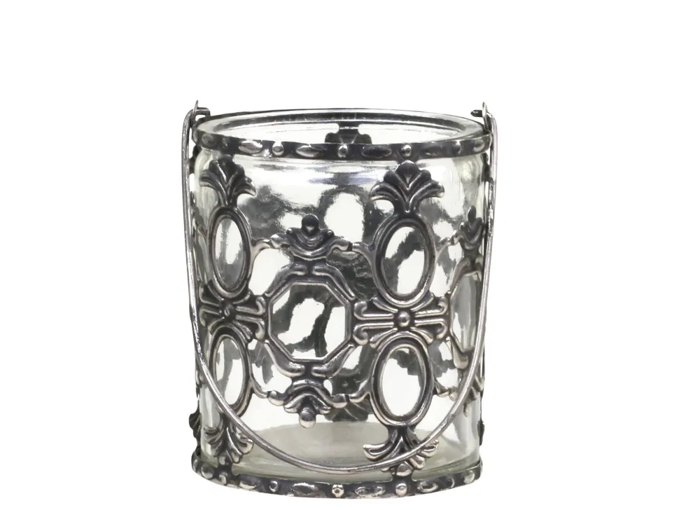 Chic Antique Windlicht mit Henkel und Lilienmuster