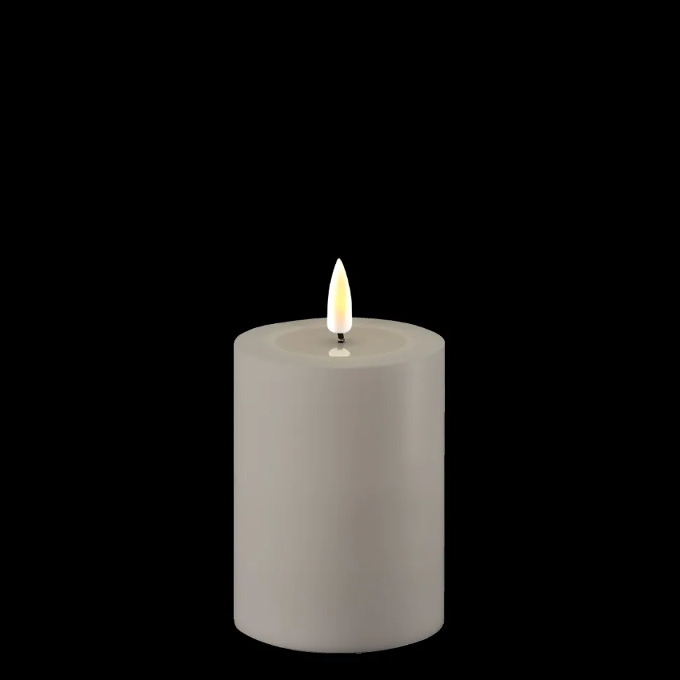 Diese graue LED Stumpenkerze von Deluxe Homeart aus Dänemark ist die perfekte Dekoration für den Garten, die Terrasse oder den Balkon. Die Kerze ist mit einer täuschend echten Flamme ausgestattet, die sogar flackert.