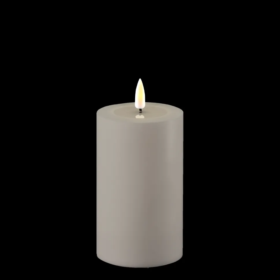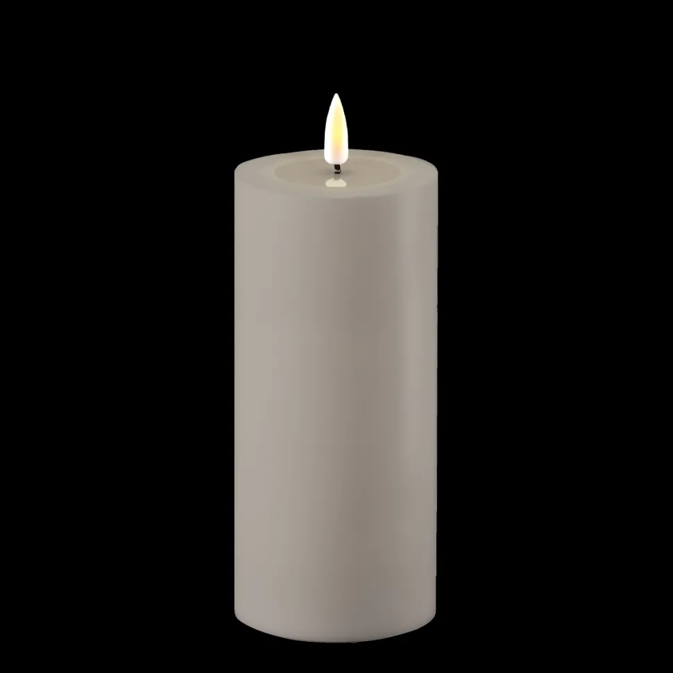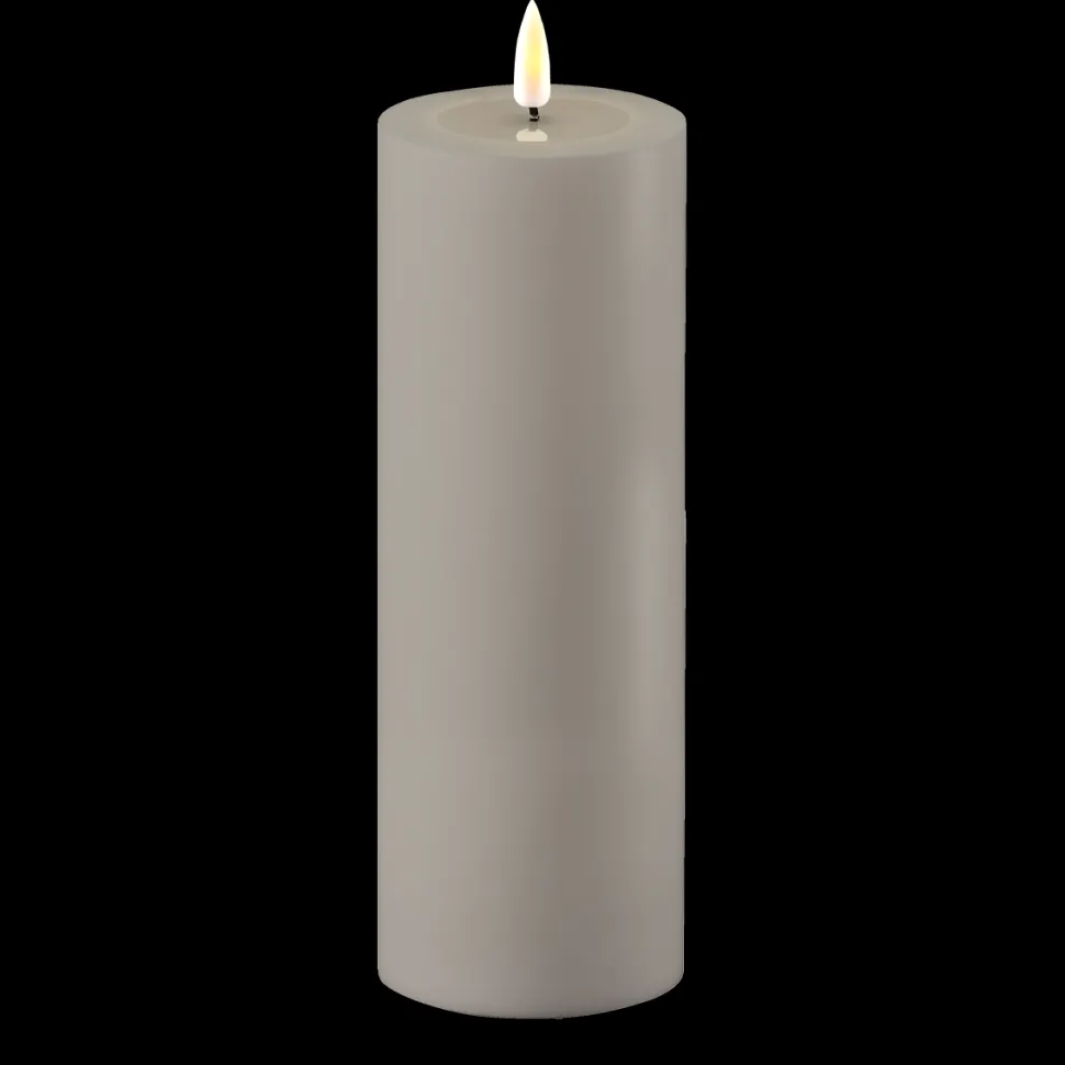 Deluxe Homeart LED Real Flame Outdoor Stumpenkerze grau