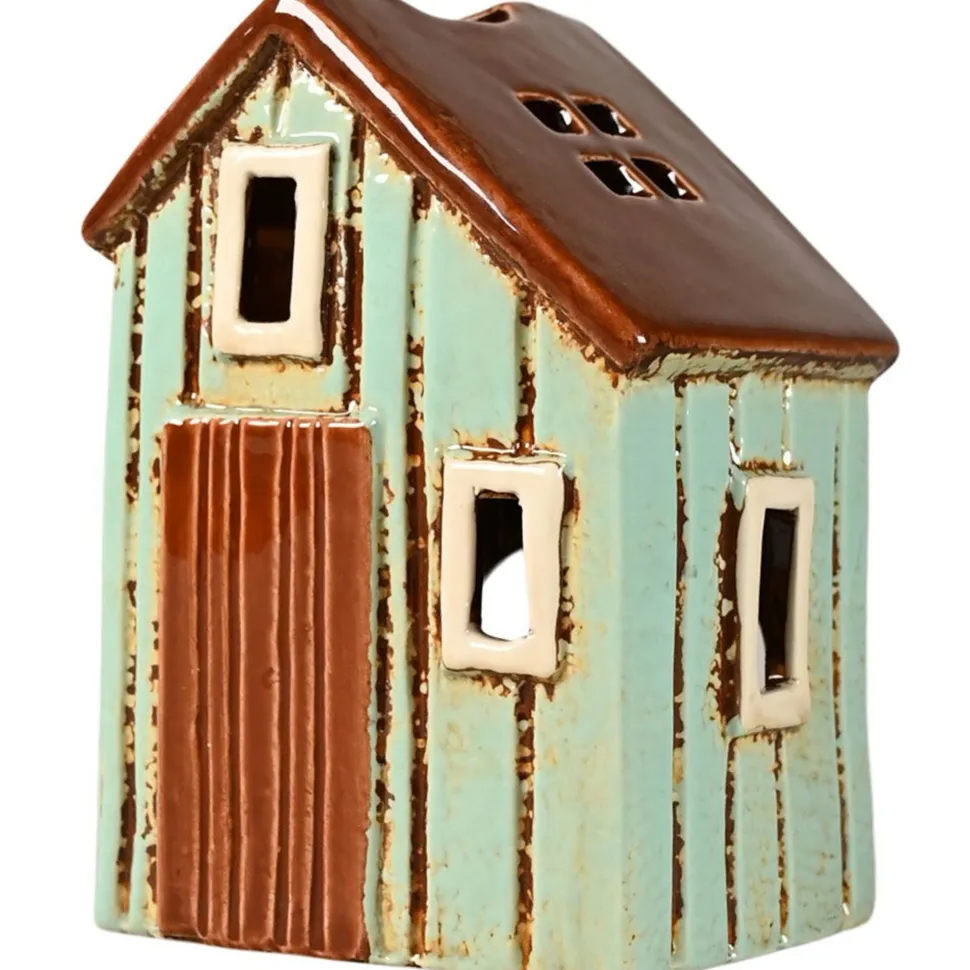 Lichthaus Keramikhaus Strandhütte türkis für Teelicht von Det Gamle Apotek bei SKANDEKO im Onlineshop kaufen.