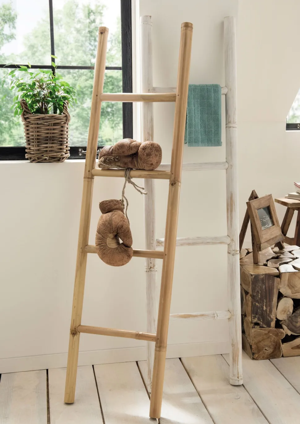 Die 150 cm hohe Bambus-Dekoleiter eignet sich nicht nur perfekt im Bad um Handtücher aufzuhängen, sondern kann auch wunderbar ins Wohnzimmer neben das Sofa gestellt werden, wo deine gemütlichen Decken ihren Platz finden. Im Schlafzimmer setzt die Dekoleiter nicht nur jede Kuscheldecke, sondern auch deine Lieblingskleidung wunderschön in Szene. Geschmückt mit einer Lichterkette oder anderen Dekoelementen verleiht die Baumbusleiter jedem Raum das gewisse Etwas und sorgt für Gemütlichkeit!