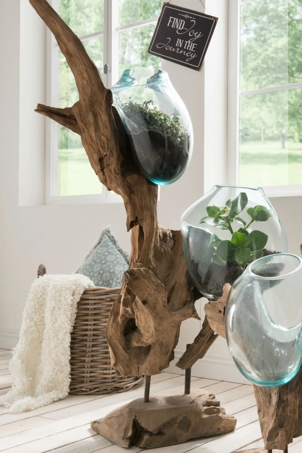 Faktorei Deko-Wurzel mit Glasvase in Tropfenform Teak-Holz