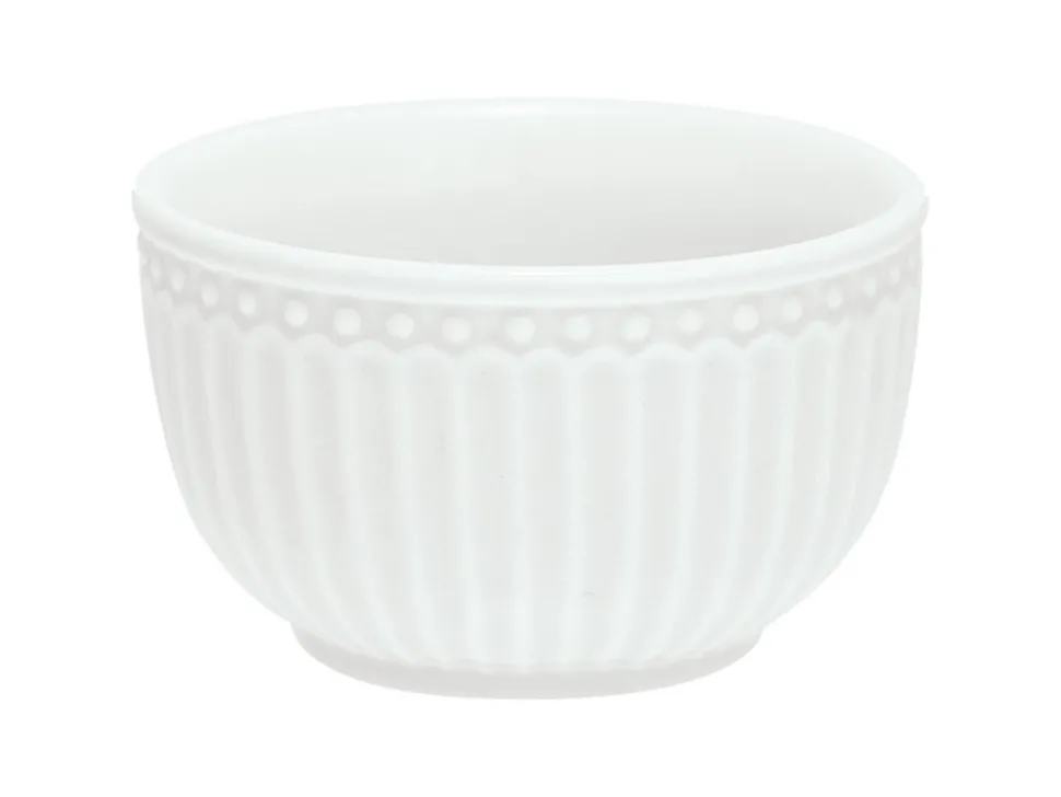 Diese kleine Schüssel Alice von GreenGate ist ideal für den Alltag geeignet. Nutze die Schüssel mit den Maßen 8.5 x 5 cm, um deine Snacks stilvoll zu platzieren und servieren. Ob Obst, Nüsse oder Schokolade, die Schüssel bereitet beim Snacken große Freude durch ihre farbenfrohe Natur und die griffigen Rillen.